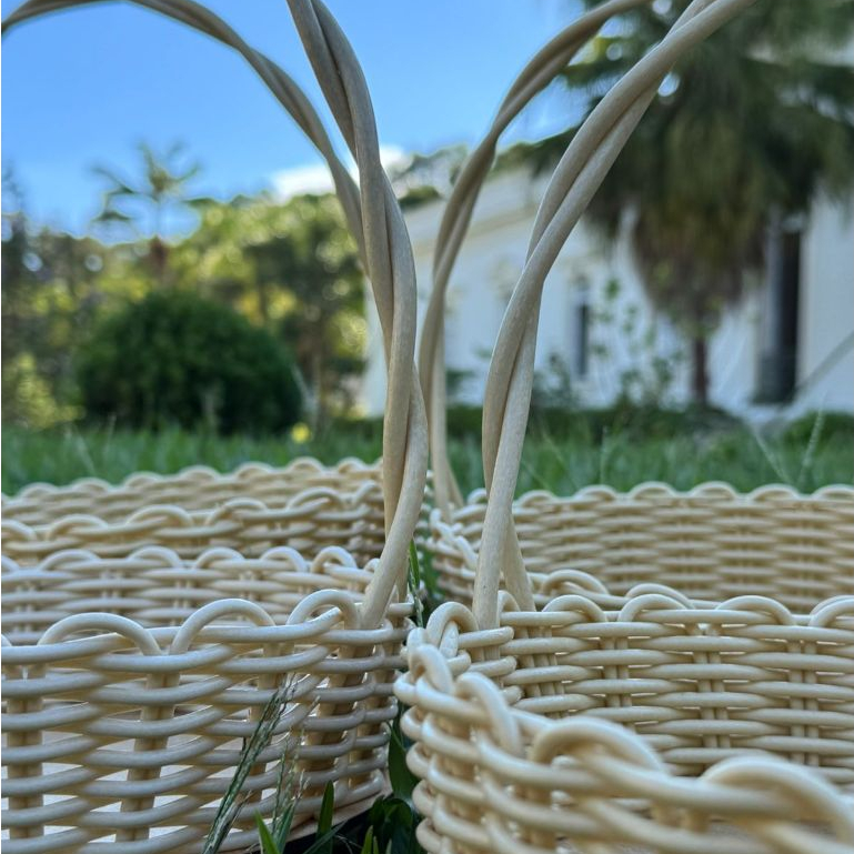 Kit 2 Cestas Fraldeiras Sintéticas 20 cm Para Decoração de Festas/Presentes - Cor Palha