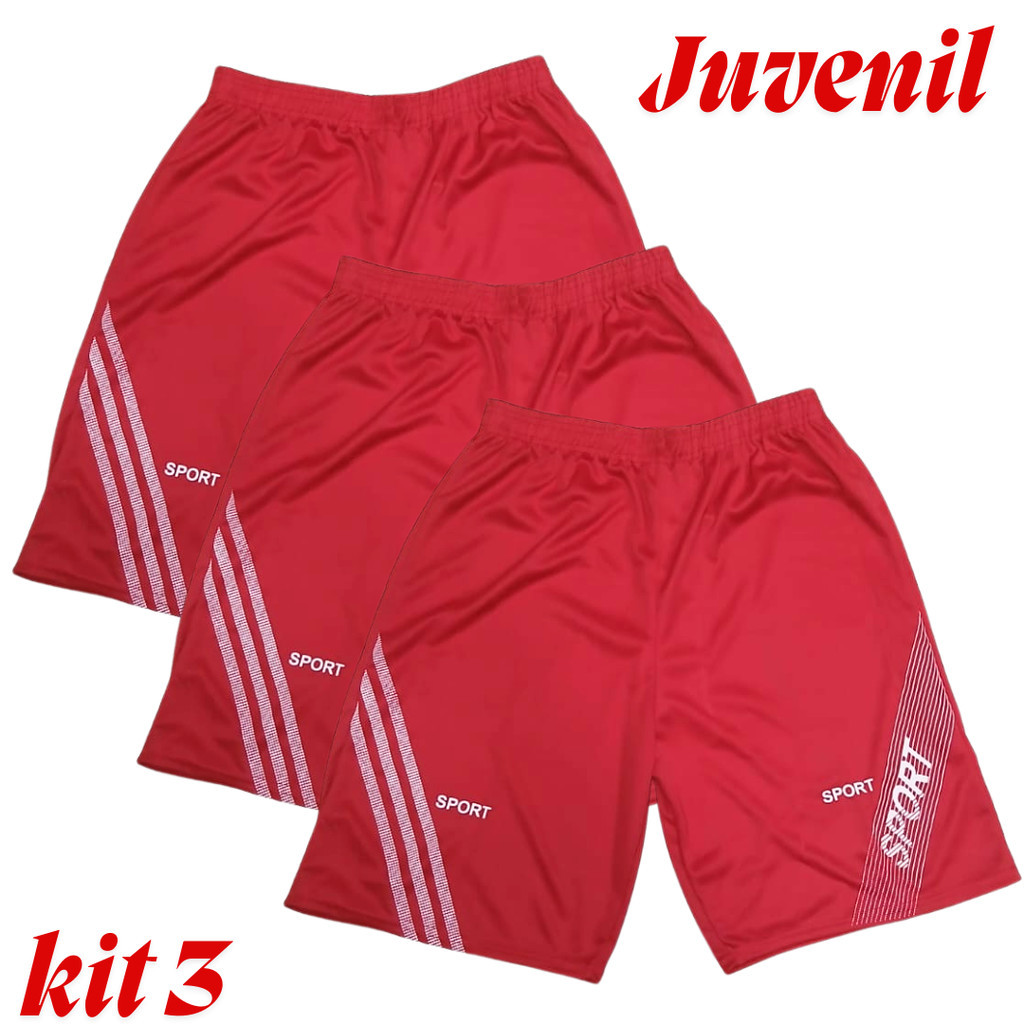 Kit 3 Bermudas Short Calção Para Futebol Caminhada E Ginastica Juvenil Criança Oferta