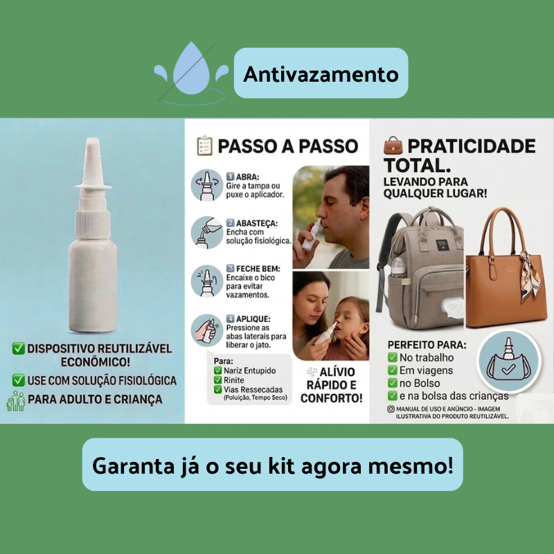 Spray Nasal Reutilizável Limpeza Nasal Descongestão Adulto Infantil Rinite Sinusite Kit 2