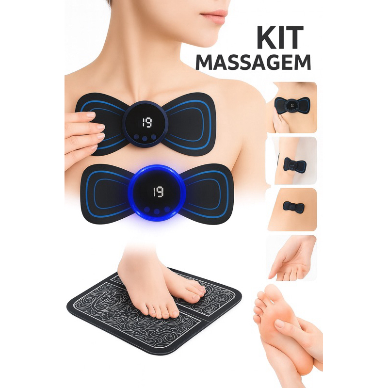 Kit Massageador Elétrico EMS para Pés e Coluna – Alívio Muscular e Relaxamento Profundo