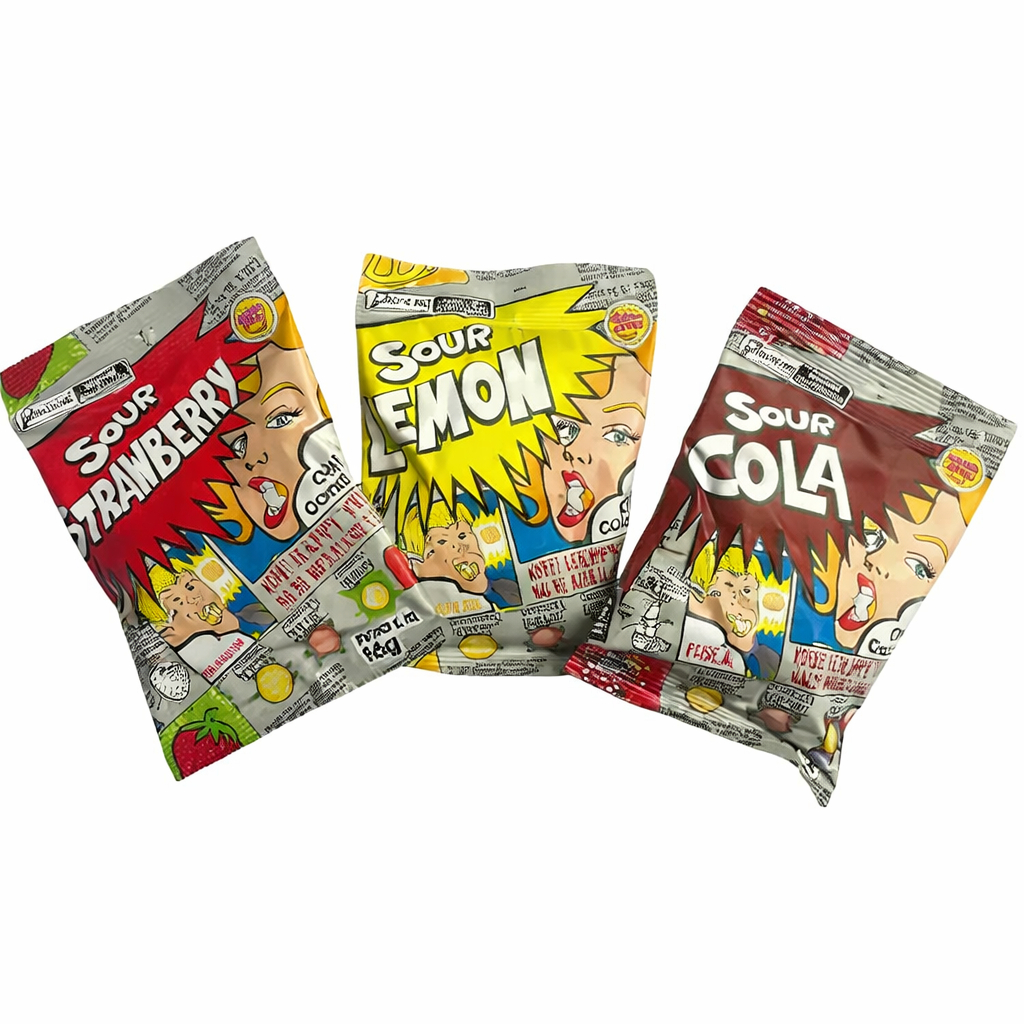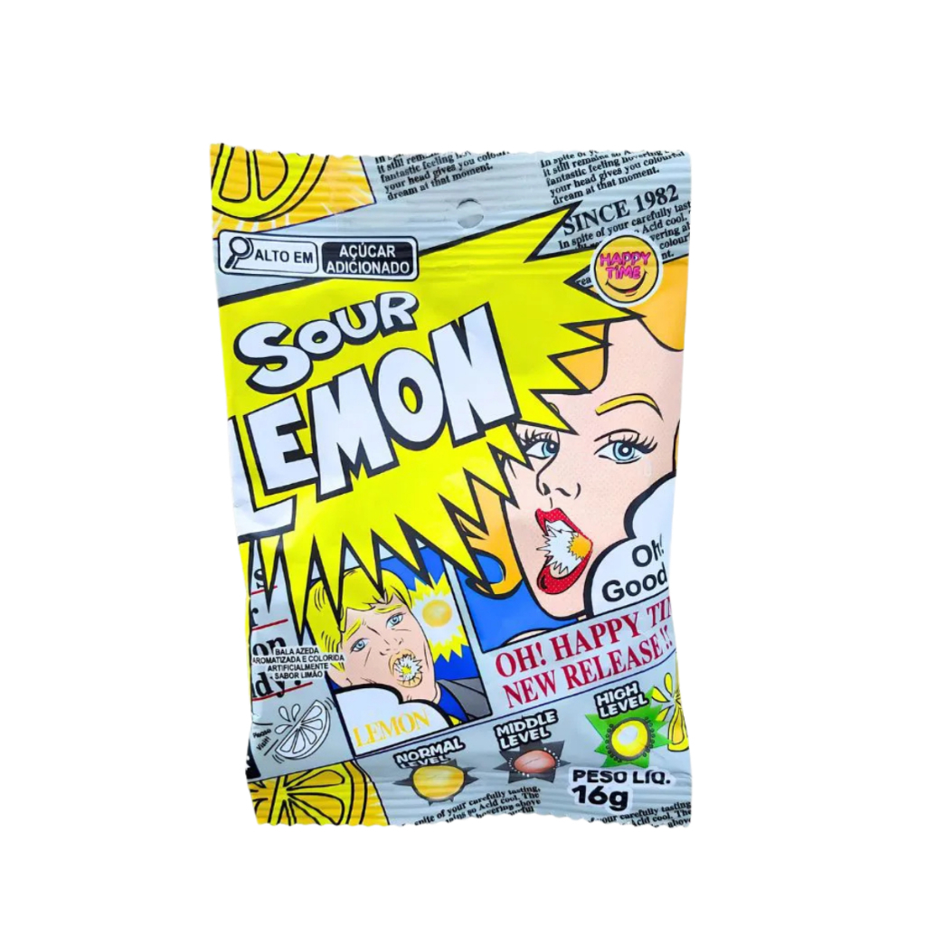 KIT 3 Balas Azedas ácidas Sour Lemon (Limão), Cola e Strawberry (morango) Happy Time16g cada