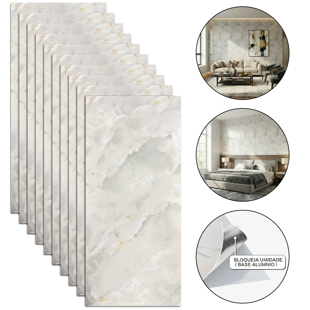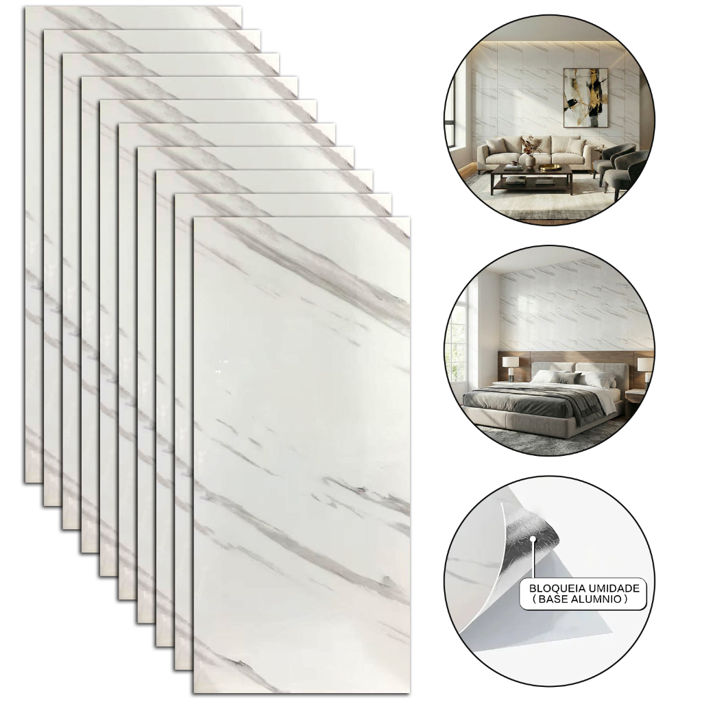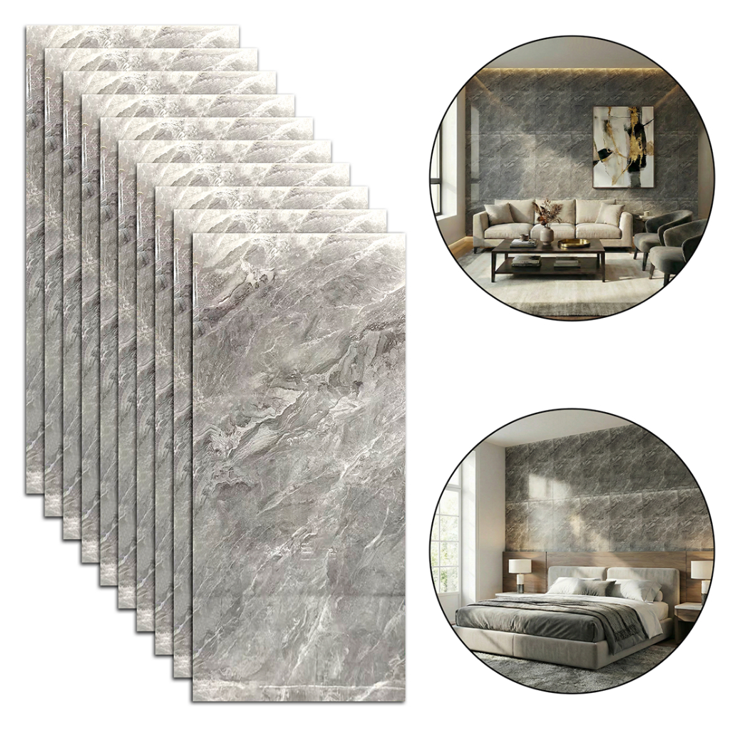 Kit 10 Placas Adesivas 3D Mármore De Parede Relevo Waterproof 30cm X 60cm Decoração
