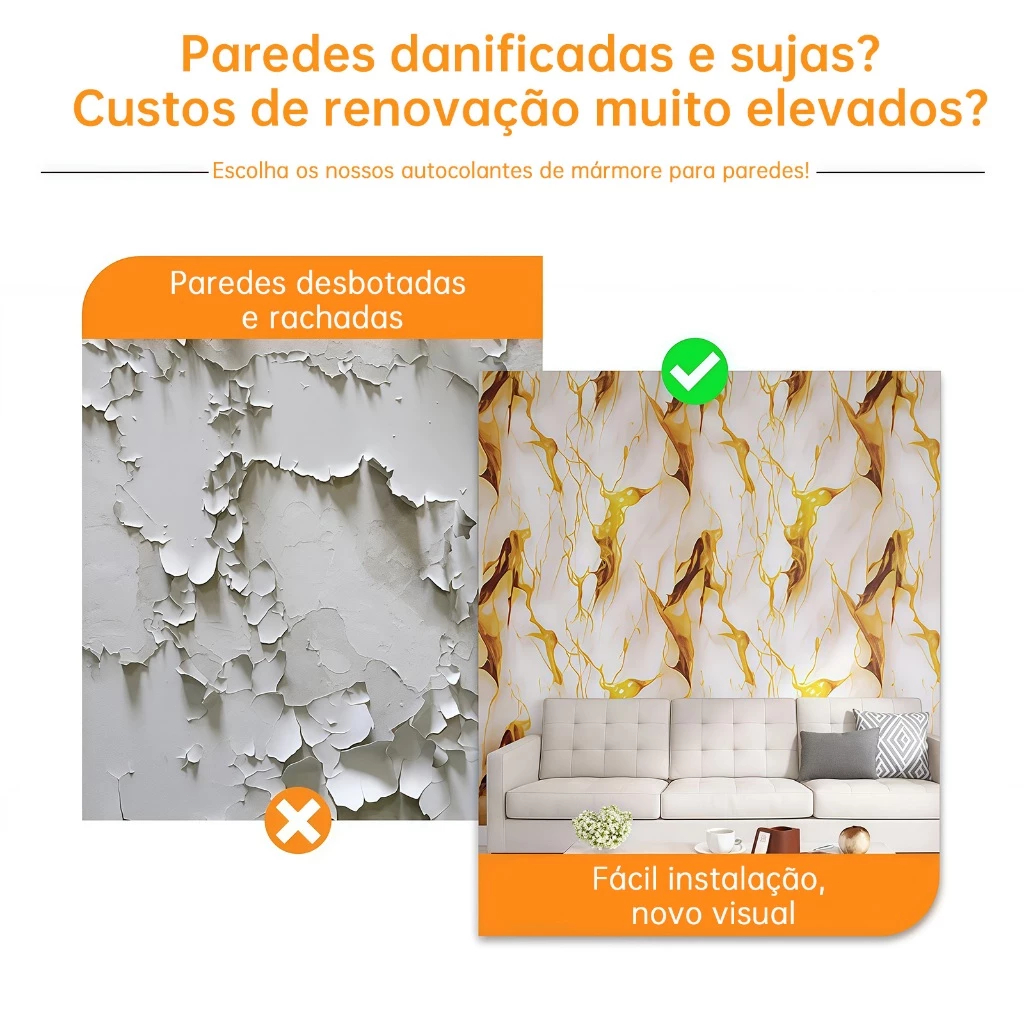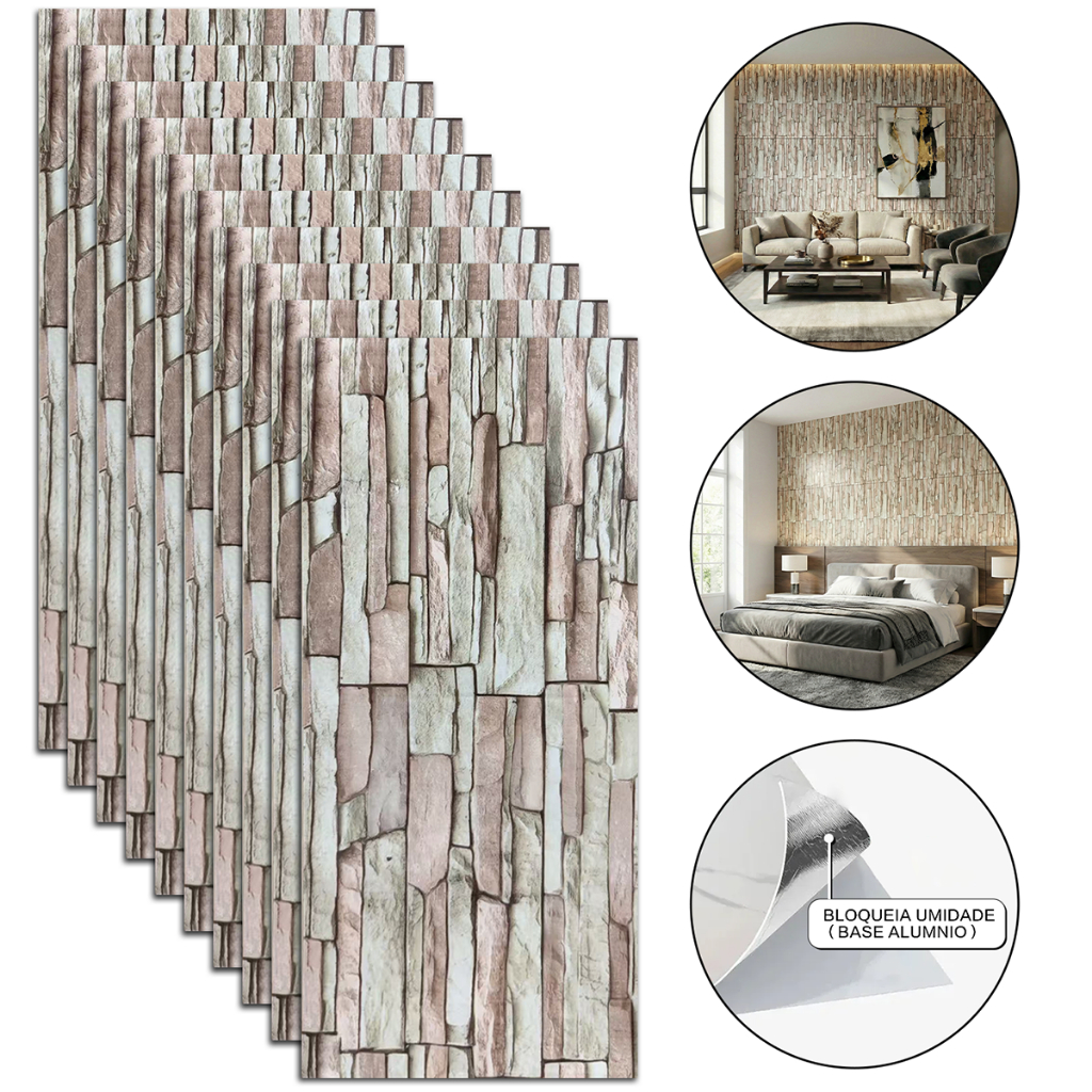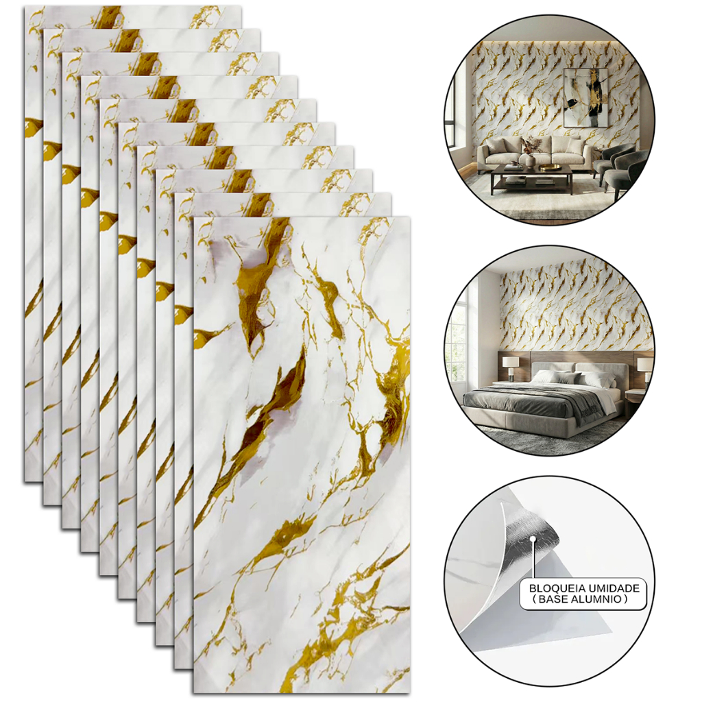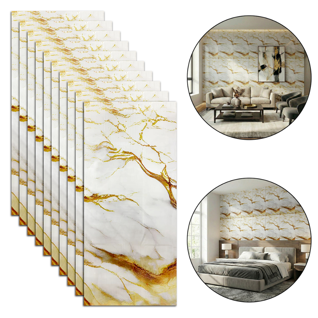 Kit 10 Placas Adesivas 3D Mármore De Parede Relevo Waterproof 30cm X 60cm Decoração