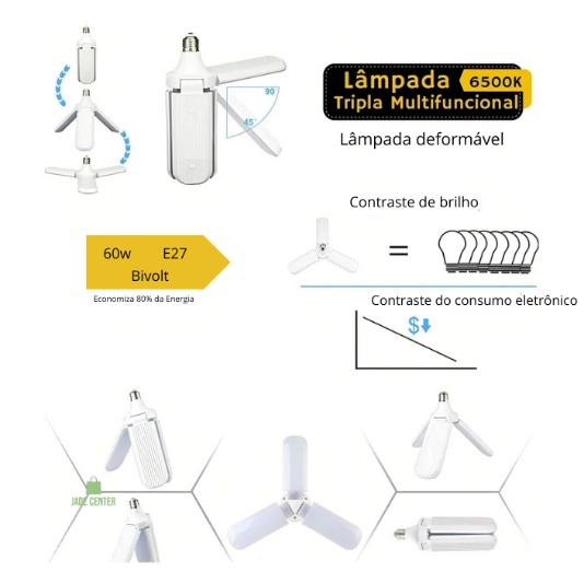 Kit Luminária Pixar Cromada Artigulada + Lâmpada 3 Pétalas 60W Led Branca Manicure Estética Cômodo Ou Espaço Intelectual