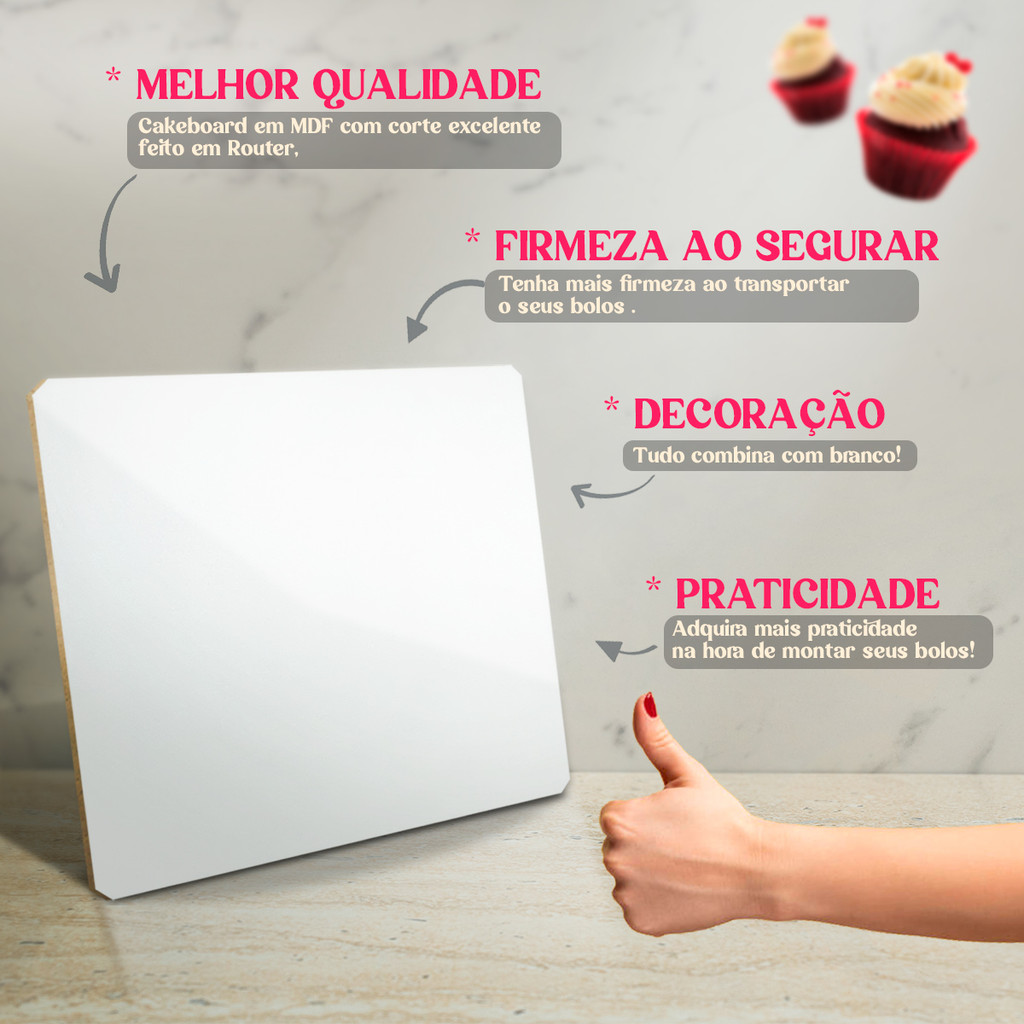 Cake Board Mdf 3mm Quadrado 30x30cm Bolo Confeitaria Prato Base Com 10