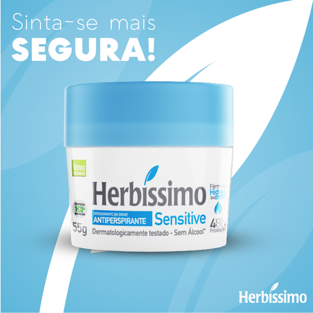 Kit 3 unid - Desodorante Creme Antitranspirante Herbíssimo Sensitive 55G