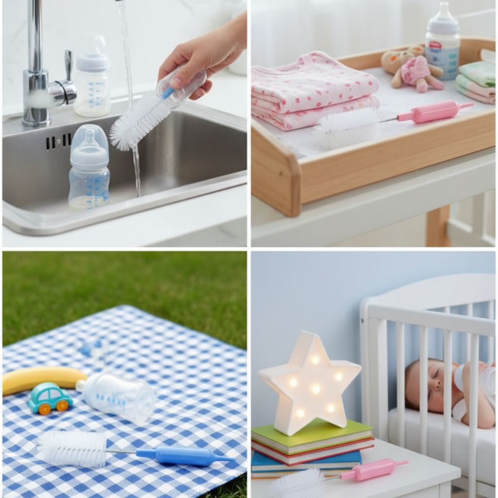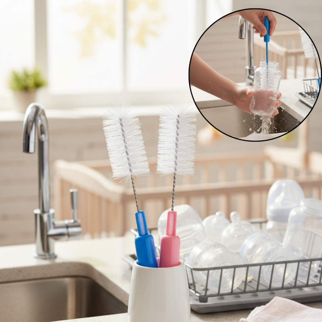 Kit 1-5 Escova Grande para Mamadeira e Bico Limpeza Murano - Azul/ Rosa REF 116 LUMX3 ERA