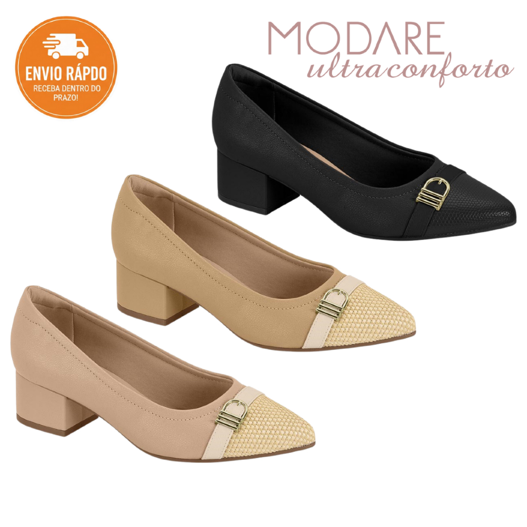 Sapato Scarpin Modare Ultraconforto Salto Bloco Bico Fino
