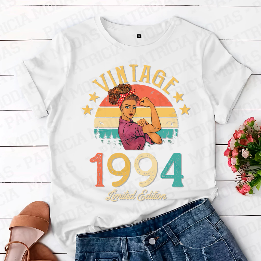 Camiseta Unissex 100% Algodão, Vintage Mulher 1994. P ao GG Feminino Masculino Verao