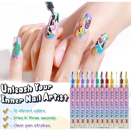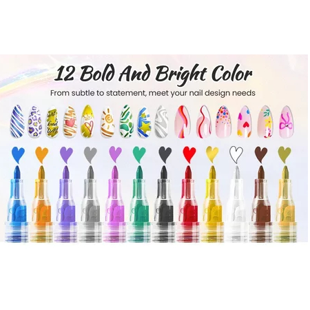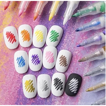 Conjunto De Canetas Para Arte Em Unhas De 12 Cores , 2026 Novos Marcadores De Gel , Caneta De Esmalte De Longa Duração D