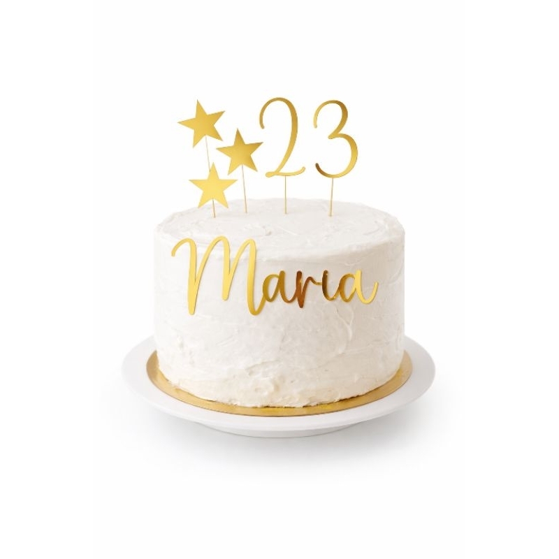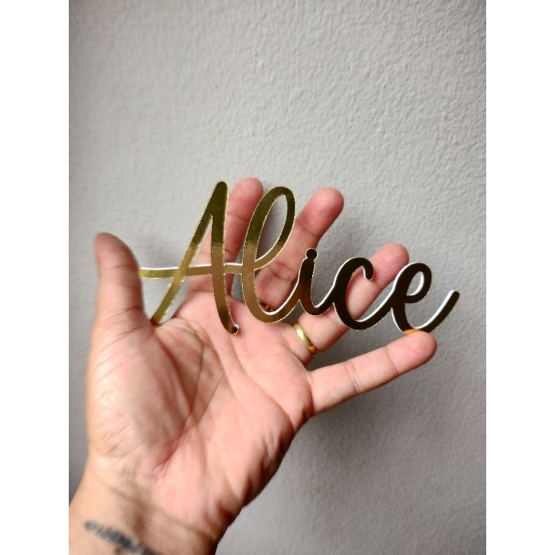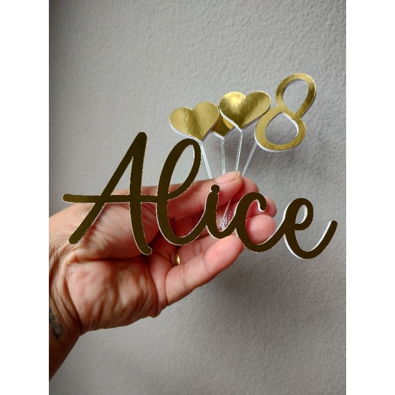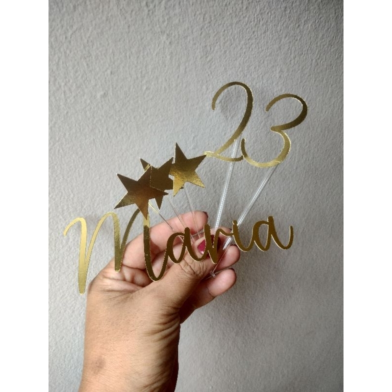 Topo de Bolo Personalizado Nome e Idade Dourado Espelhado | Envio rápido.