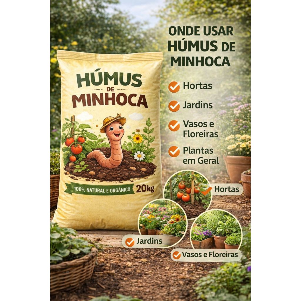 Húmus de Minhoca 2 Kg, 5Kg, 10Kg, 20Kg para Flores, Vasos, Hortas, Paisagismo e Jardinagem