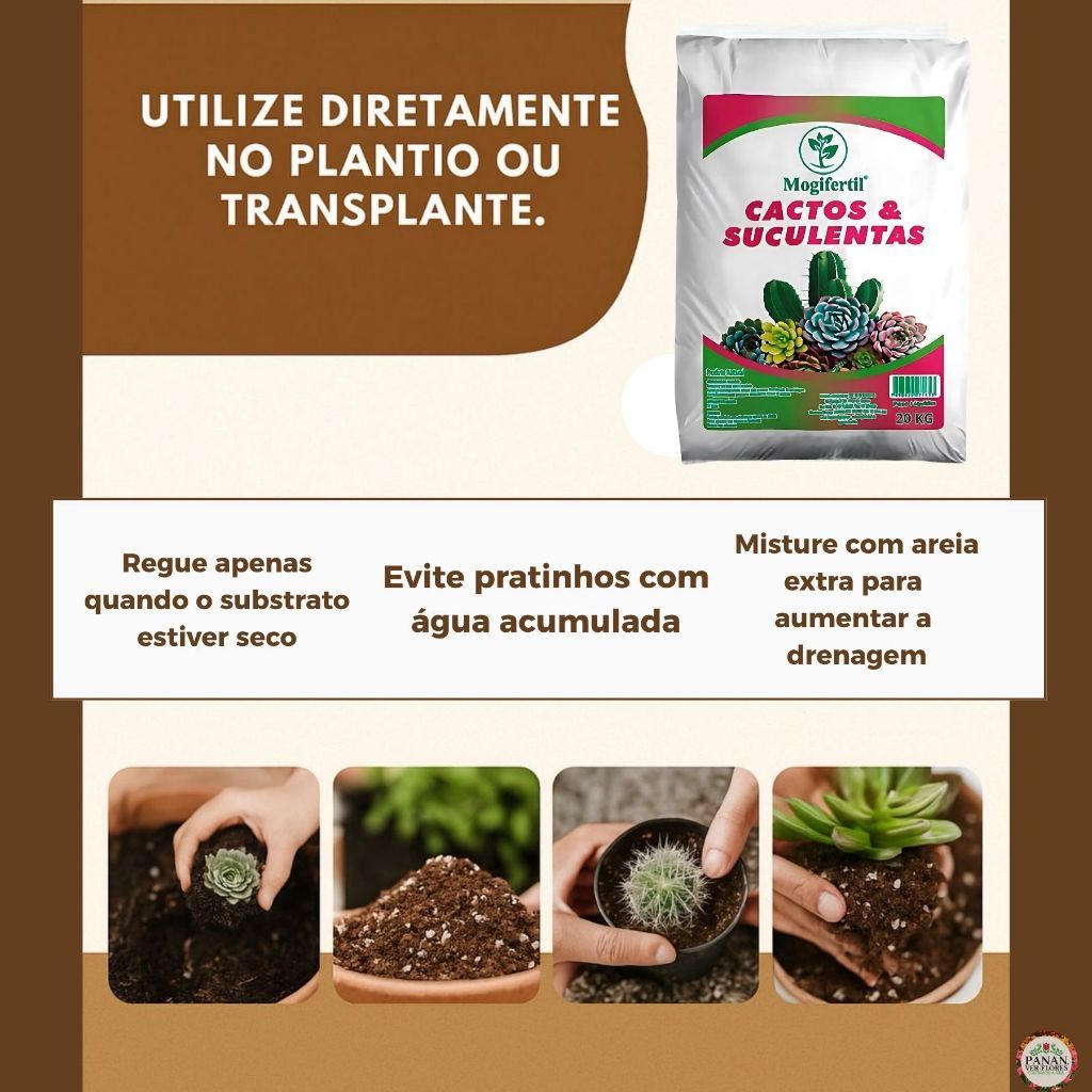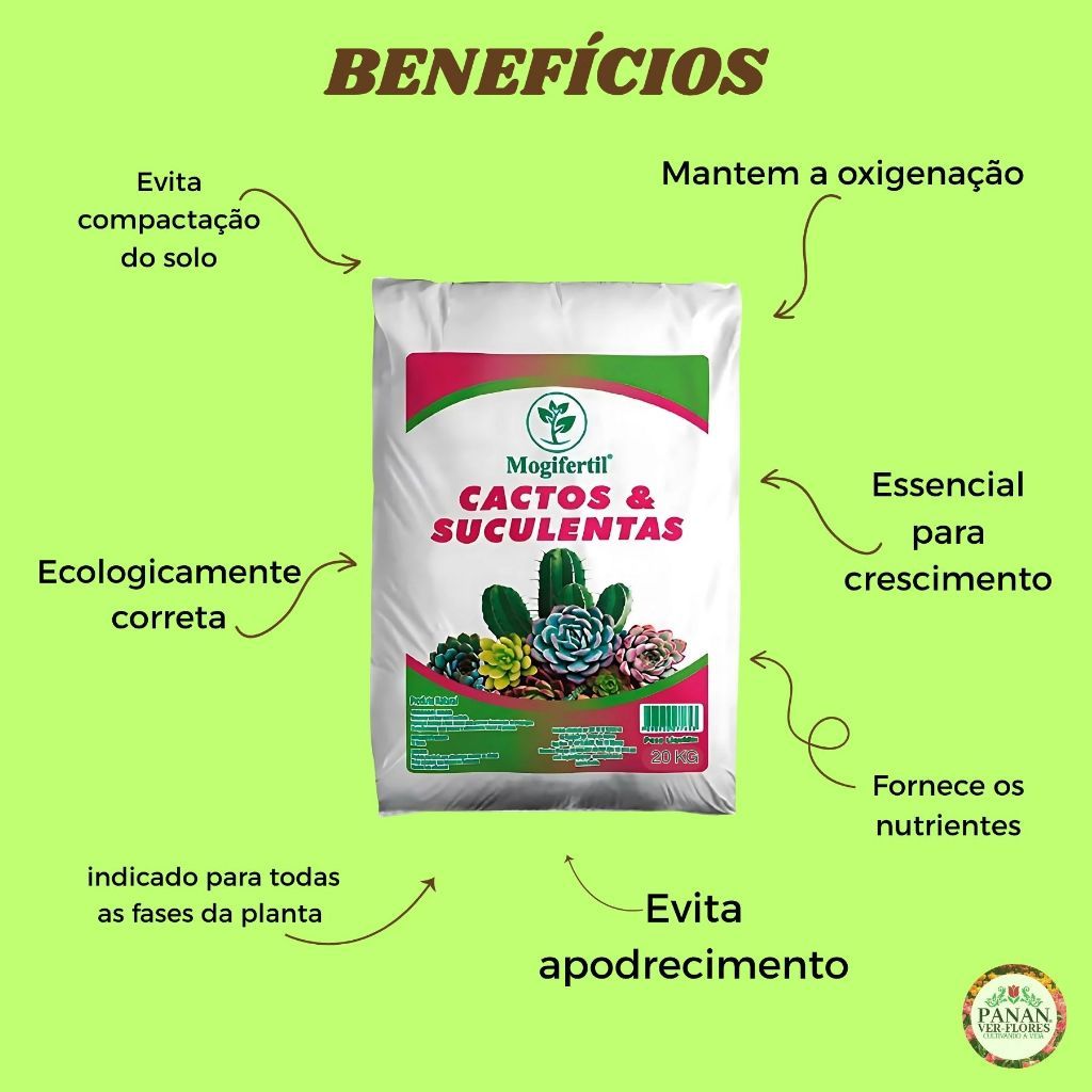 Substrato Cactos e Suculentas 20kg Mogifertil Terra Vegetal Natural Pronta Uso Jardim Vaso Plantas
