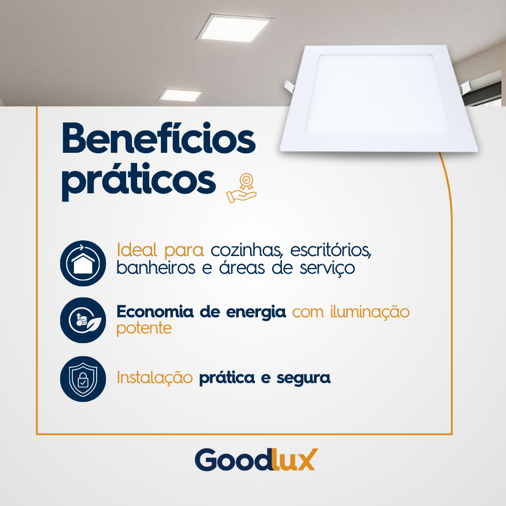 Luminária Painel Led 18w Sobrepor Branco Frio Plafon Teto Quadrado 6500K Quarto Economica Goodlux