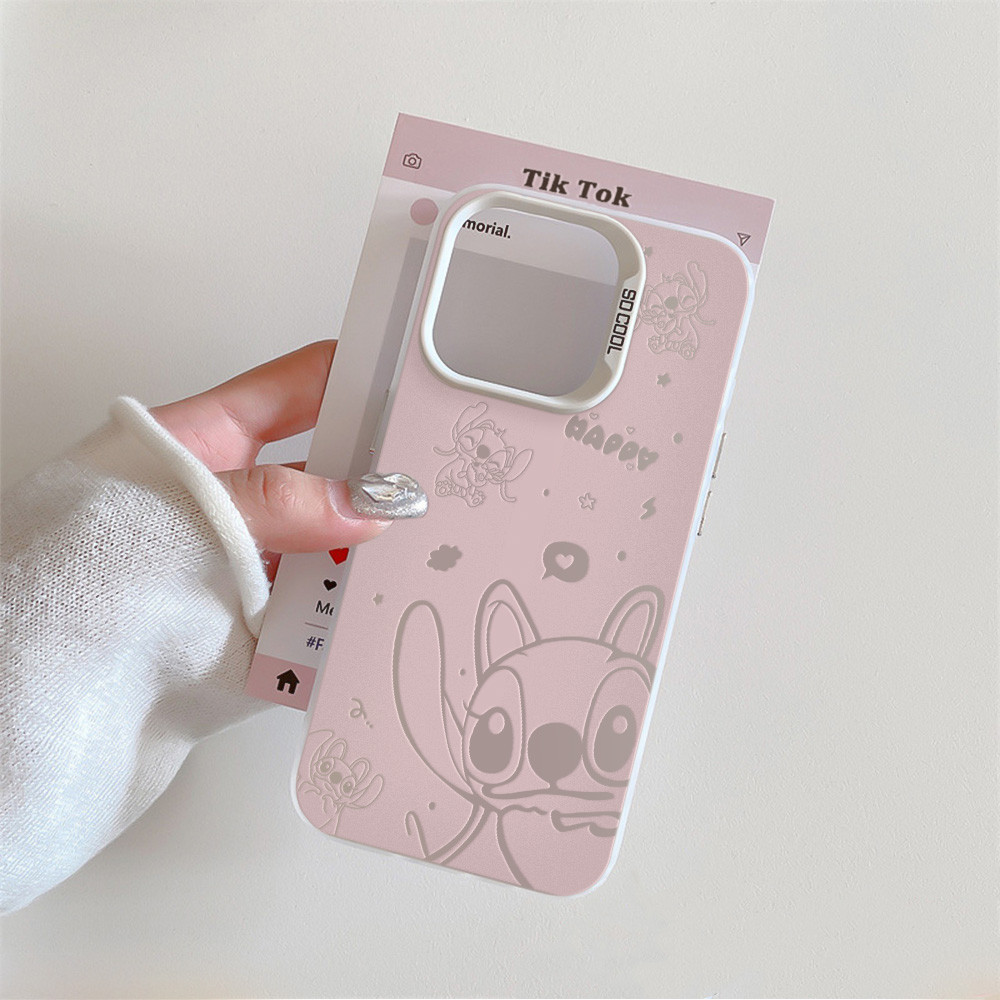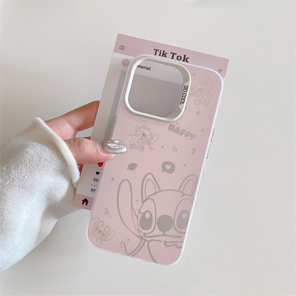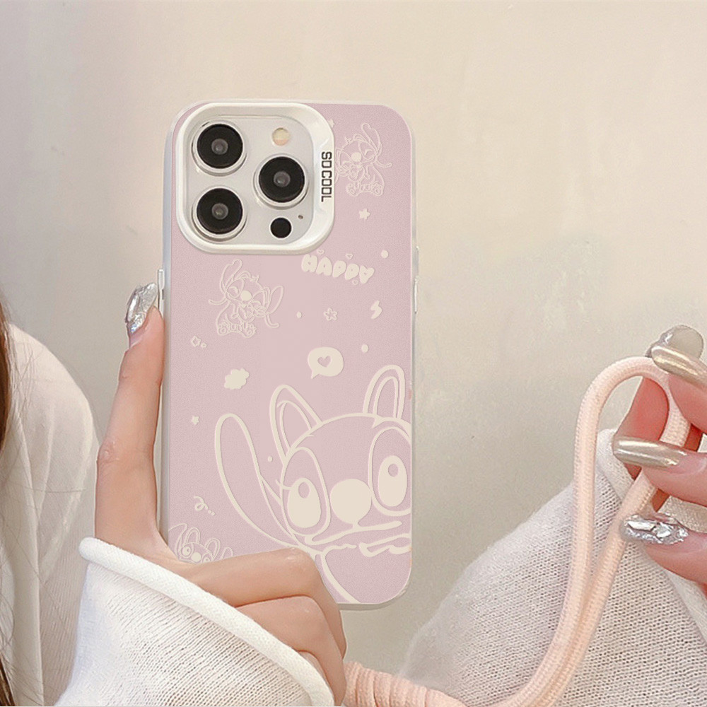 Capa Capinha Para iPhone 17 PRO MAX 16 11 12 13 14 15 pro xs XR 7+ 8+ com estampa de personagem Stitch rosa Y05897