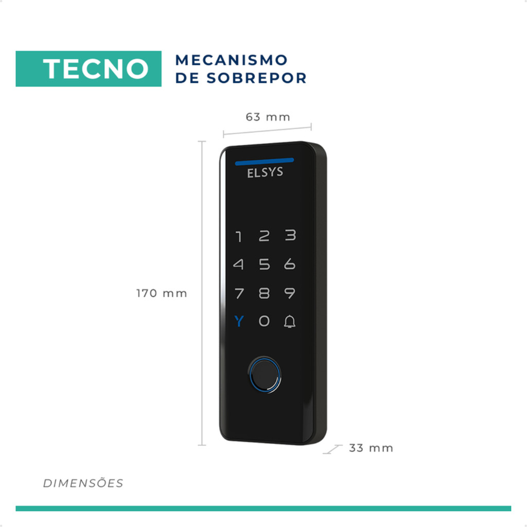 Fechadura Digital Wifi Elsys Tecno 4100 Preta De Sobrepor Senha Biometria