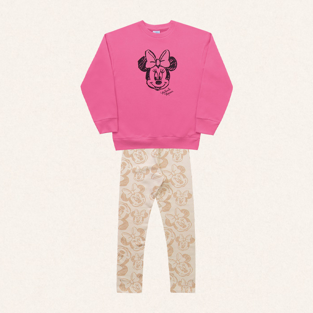 Conjunto infantil blusão em moletom e legging em molecotton Minnie Fakini