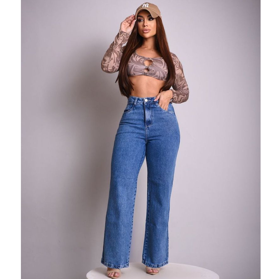 Calça Jeans Feminina Wide Leg Cintura Alta pantalona BASICA Pantalona CINTURA ALTA