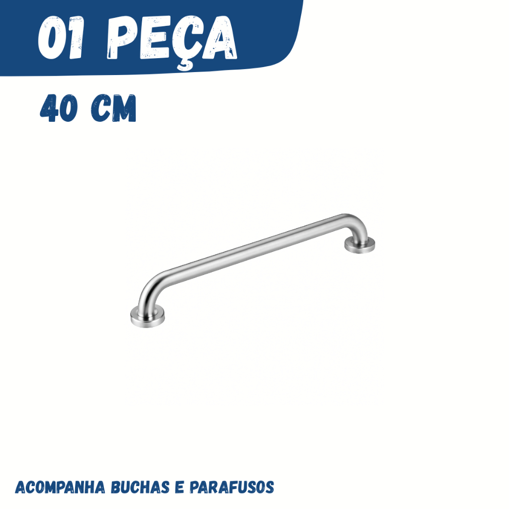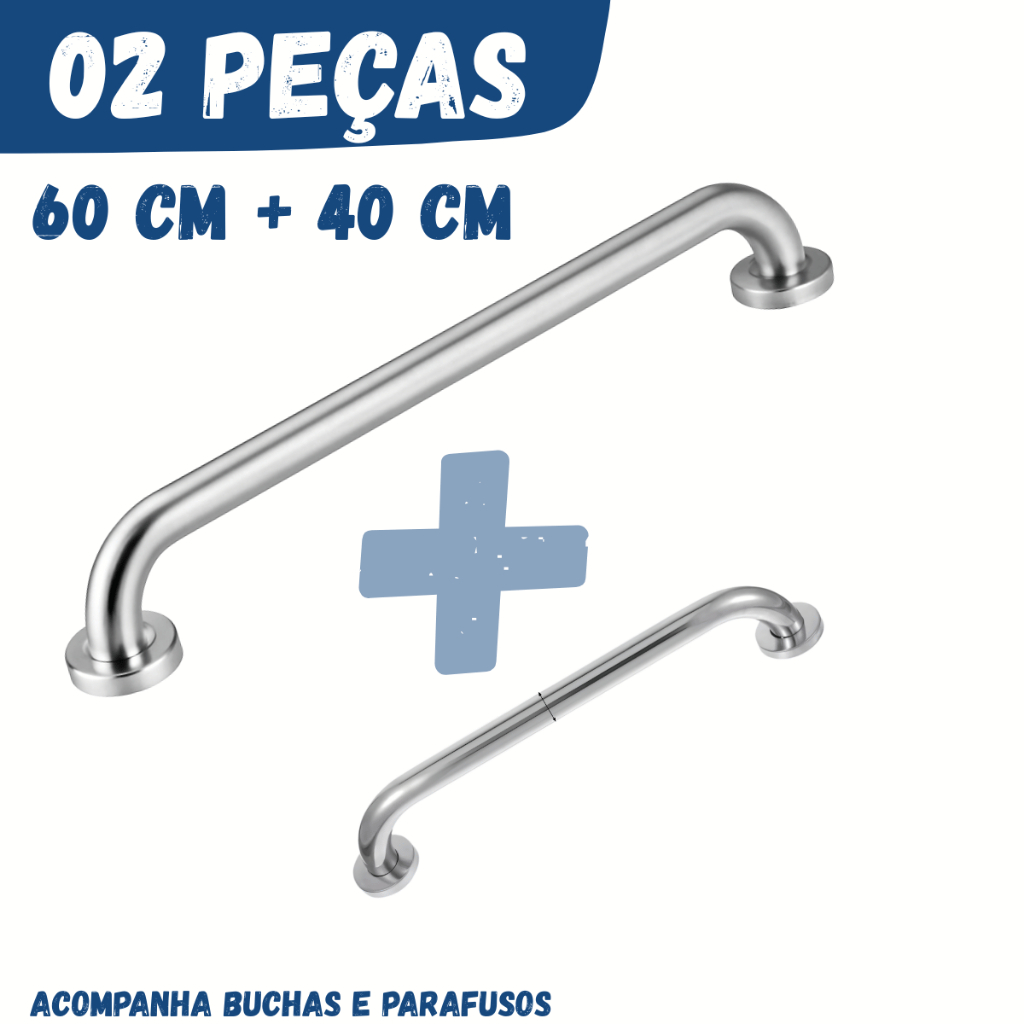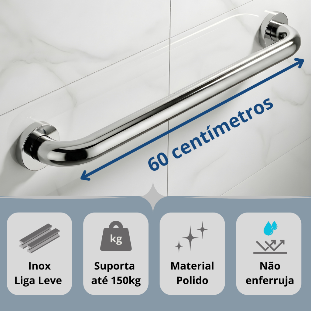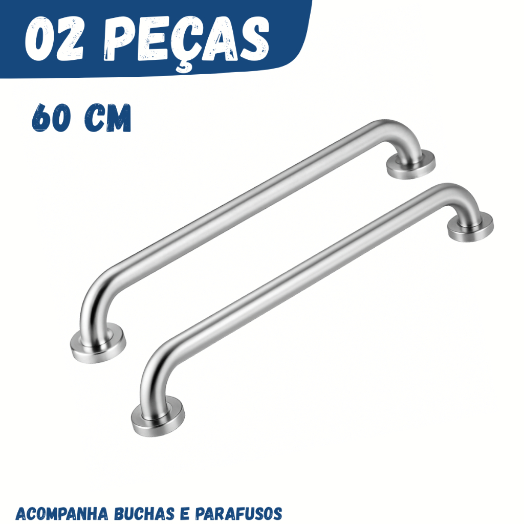Barra Apoio 60cm 40cm Antiqueda Inox Banheiro Escada Corrimão Acessibilidade Suporte Idosos Alça PCD