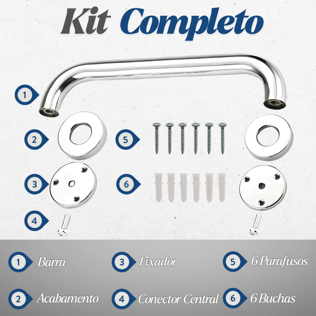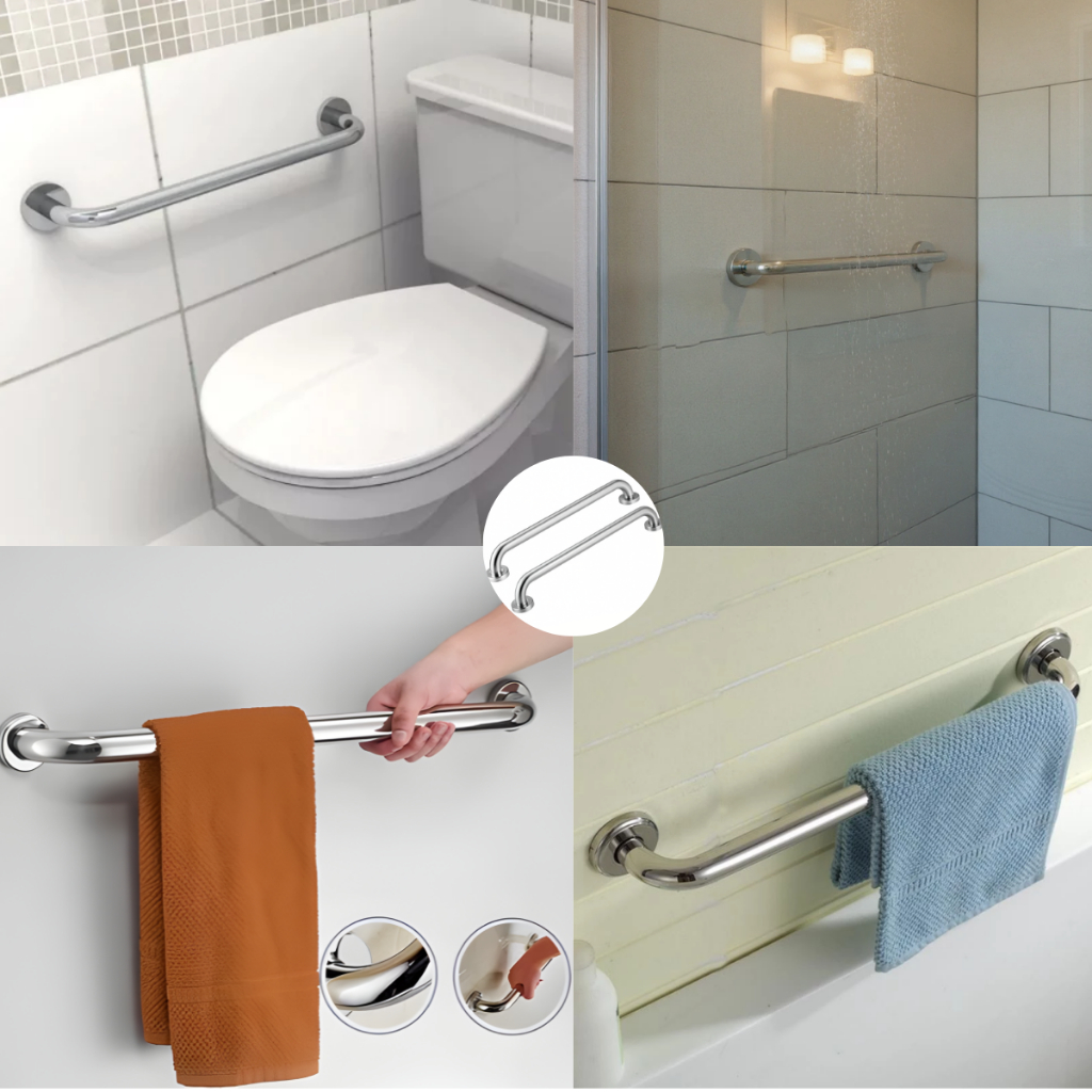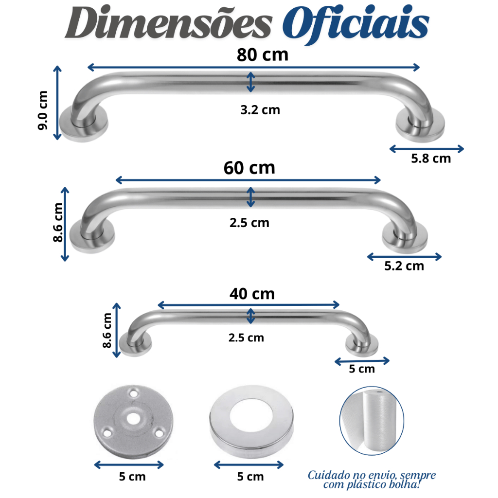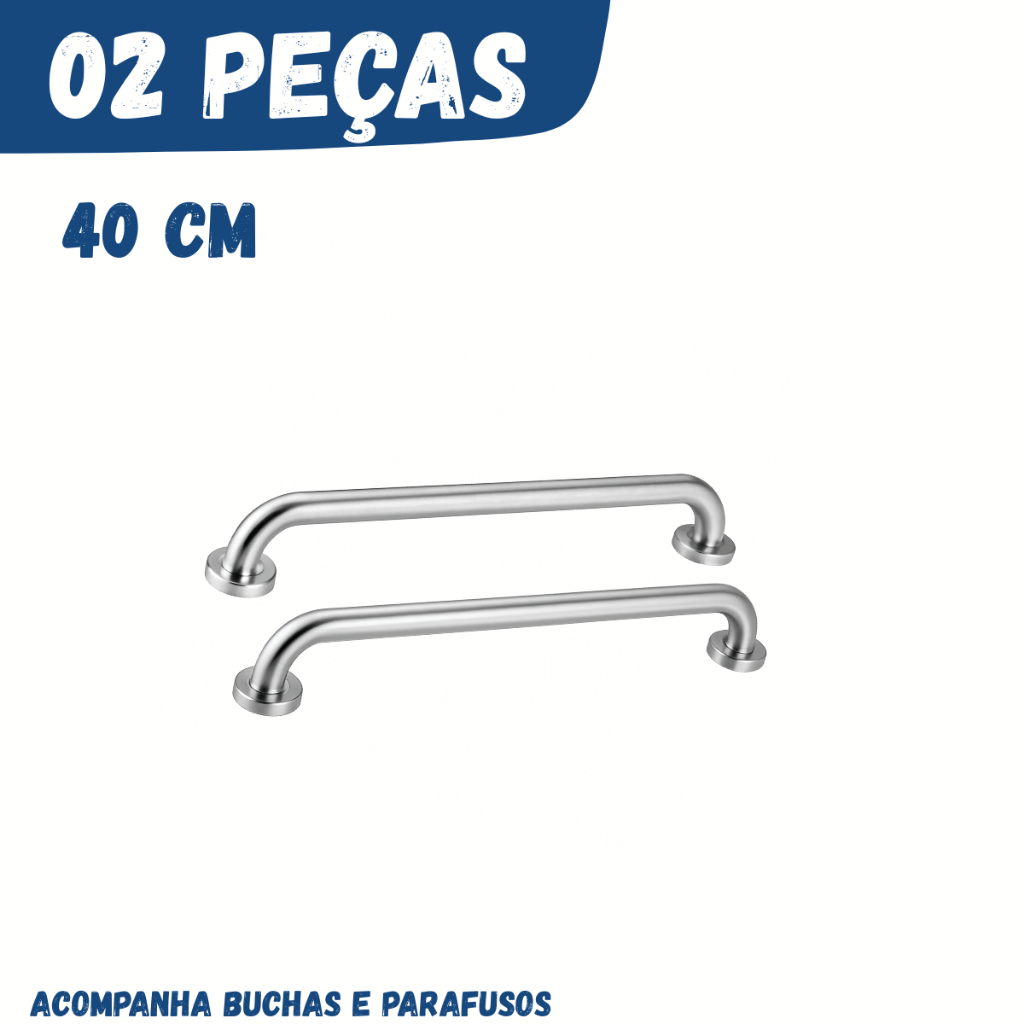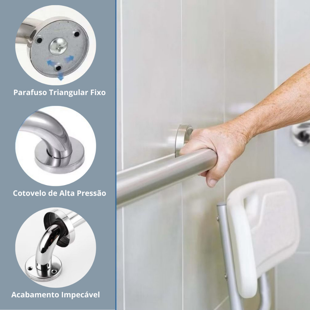Barra Apoio 60cm 40cm Antiqueda Inox Banheiro Escada Corrimão Acessibilidade Suporte Idosos Alça PCD