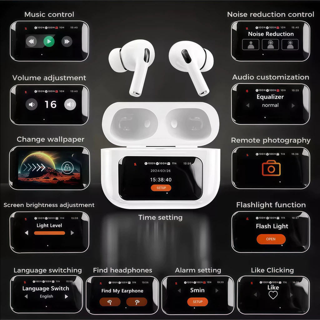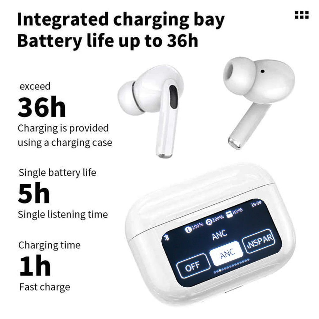 KIT1/2 A9 Pro Touch Screen ANC Fones de ouvido sem fio TWS com cancelamento de ruído Bluetooth 5.3