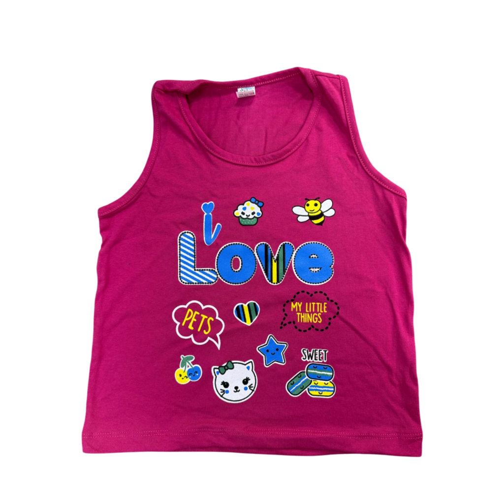 Kit 03 Camisetas Regatas Feminina Desenho Roupas Infantil Algodão Menina