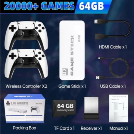 2025 NOVO Vídeo Game Stick M15 Pro 4k 64gb Hdmi Com 2 Controles Se Fio +20mil Jogos_LUIZA
