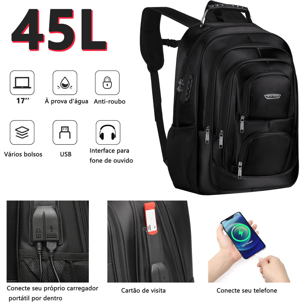 Mochila Masculina Grande Antifurto Impermeável USB com Cadeado e Cabo Aço para Notebook Viagem Trabalho