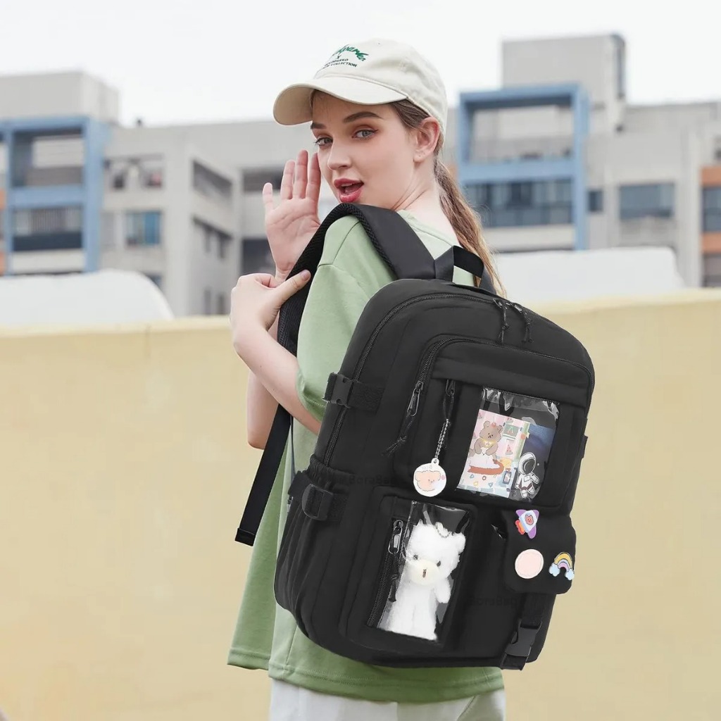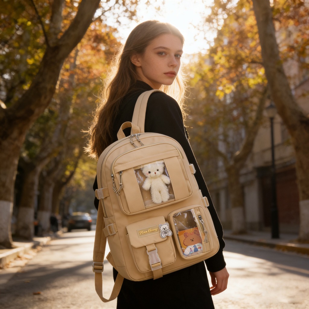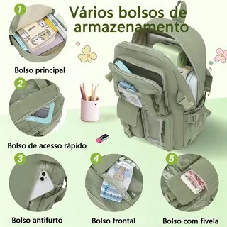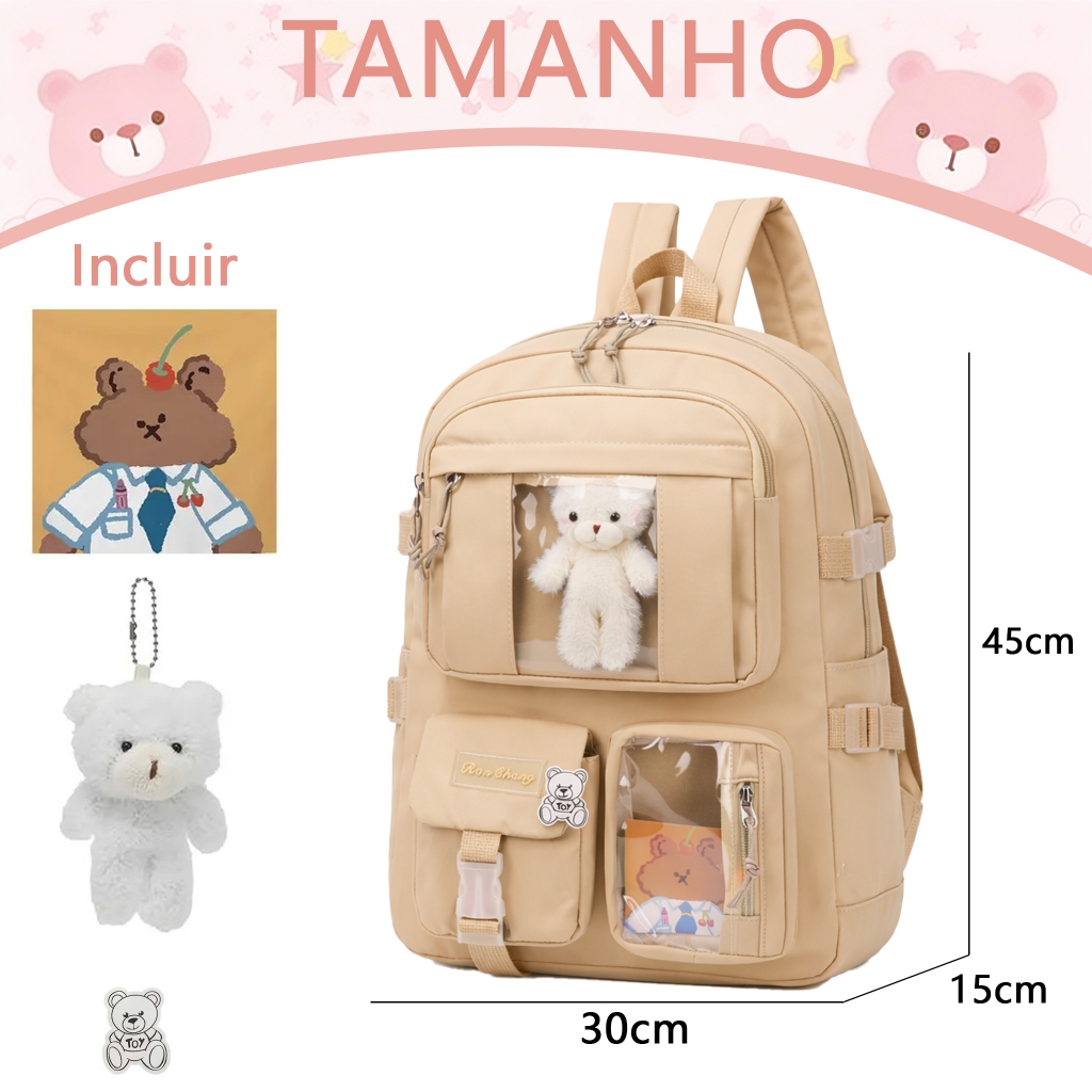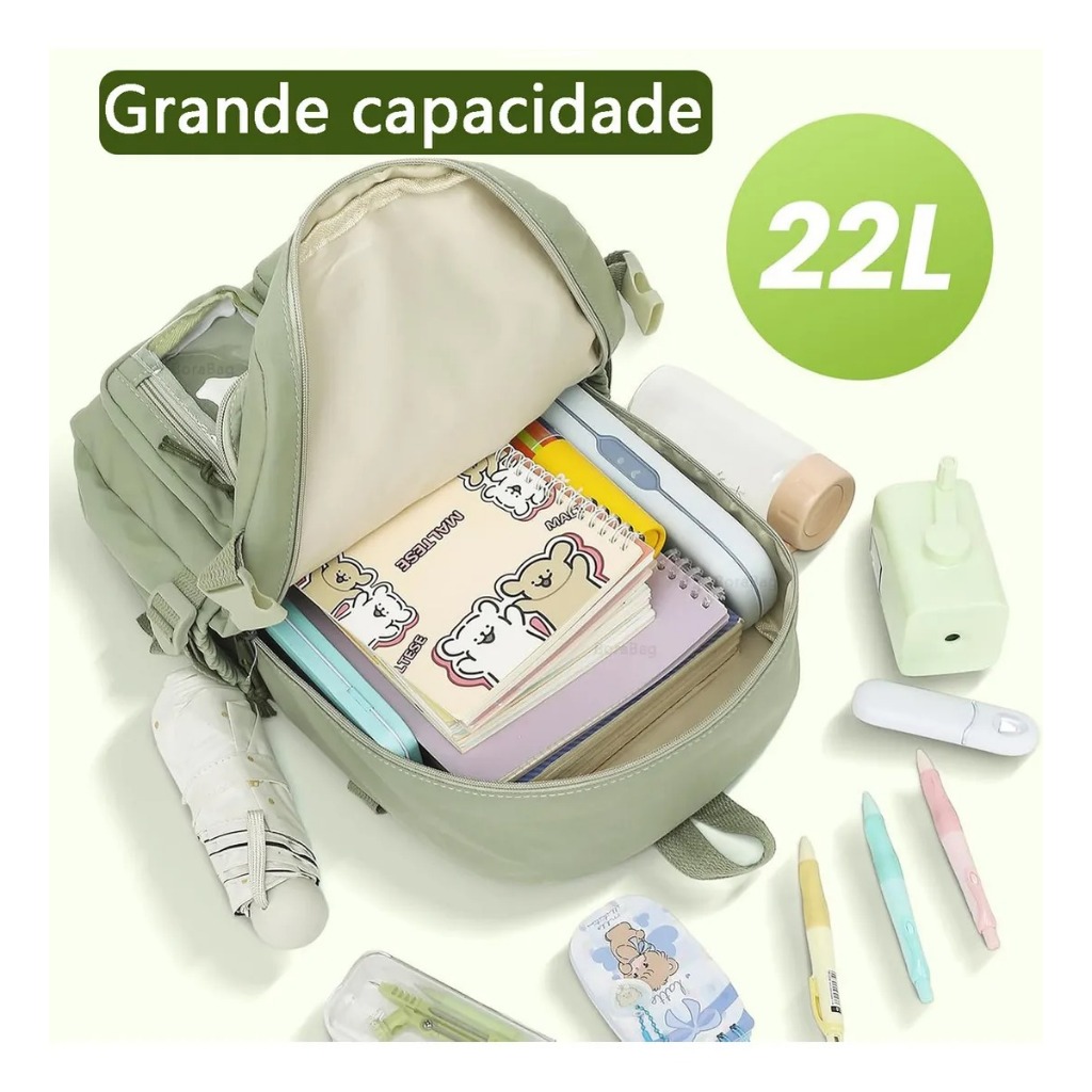 Mochila Escolar Feminina Fofa Estilo Coreano – Grande Capacidade, Ideal para Escola, Faculdade e Uso Diário