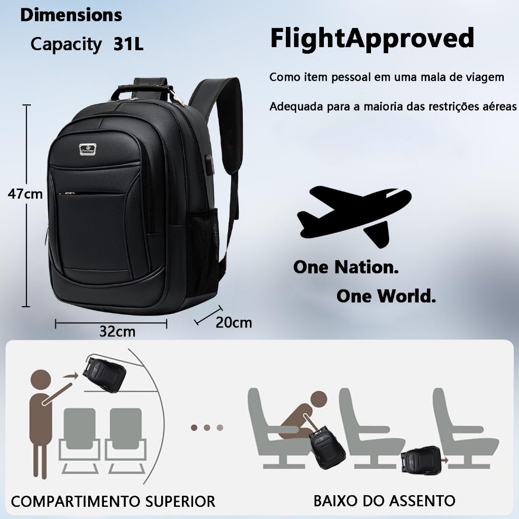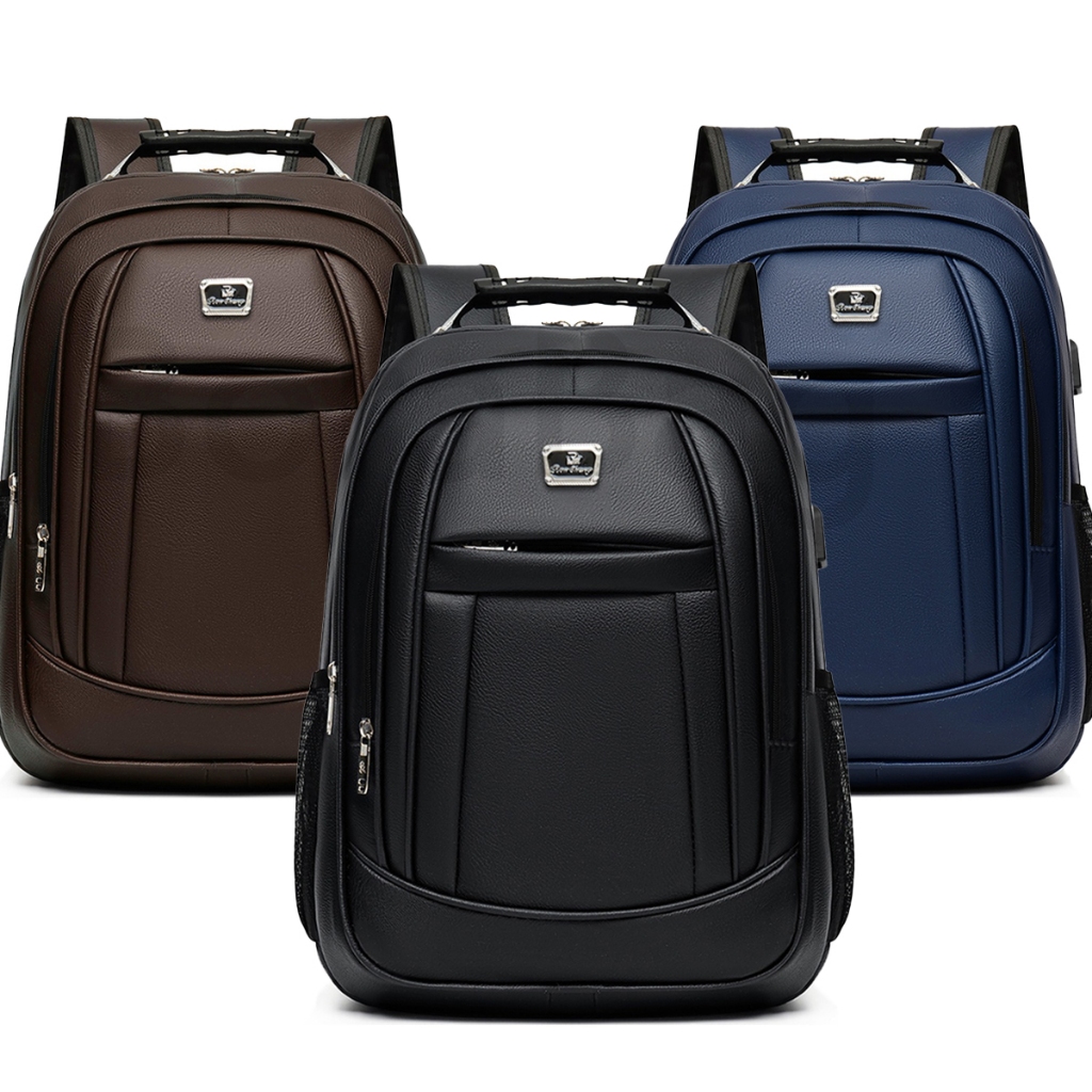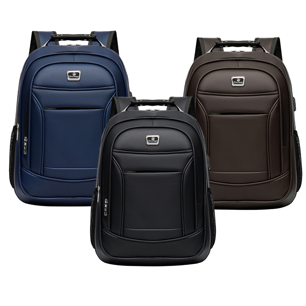 Inativo Mochila PU Grande Executiva Para Notebook Trabalho Faculdade Reforçada Cabo De Aço USB