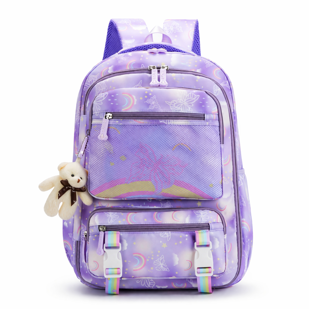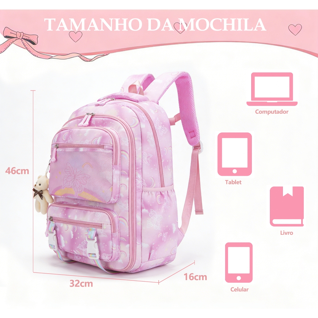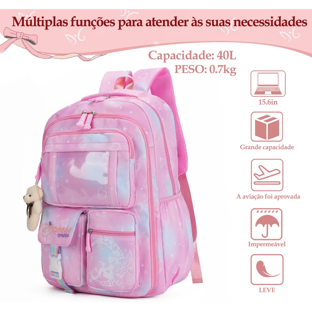 Mochila Escolar para Menina Infantil Fofa com Estampa Colorida e Abertura 180º Leve e Prática