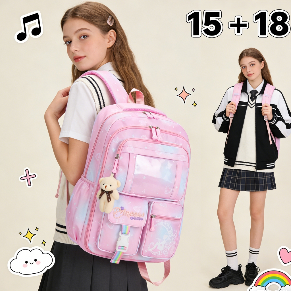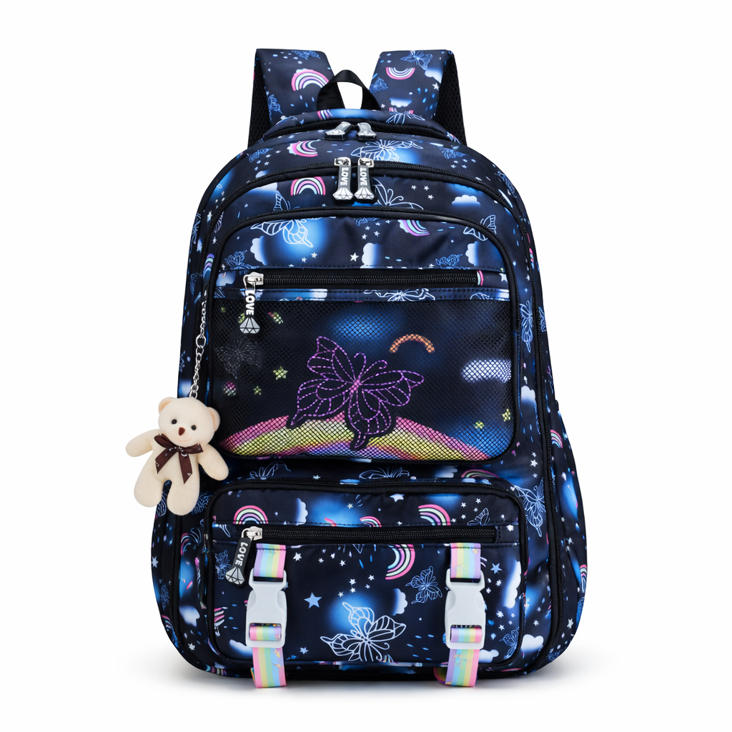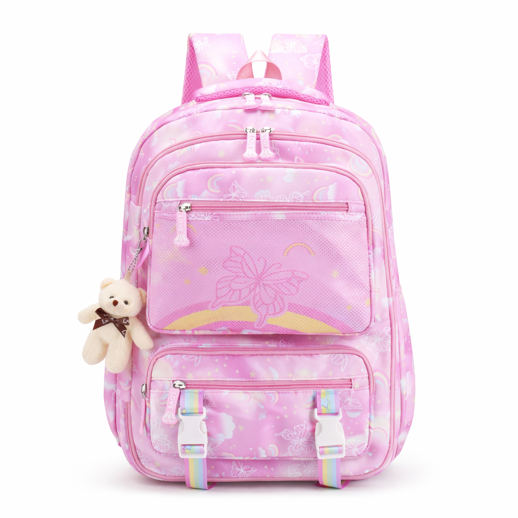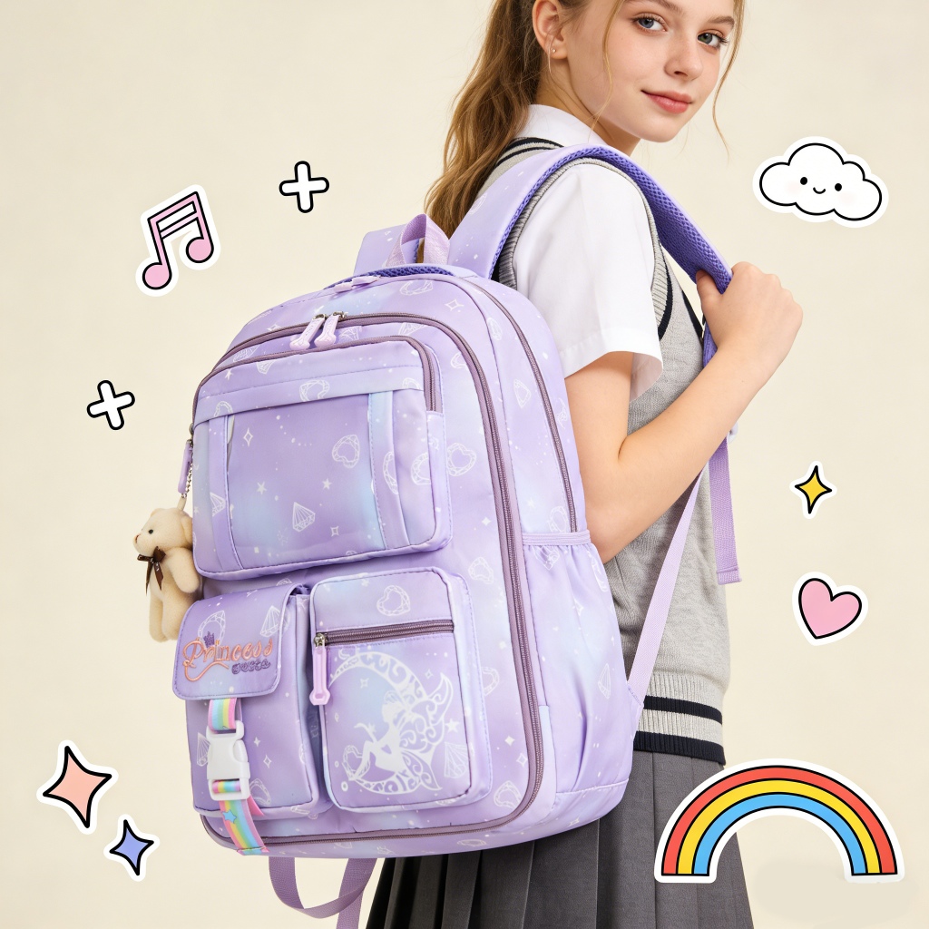 Mochila Escolar para Menina Infantil Fofa com Estampa Colorida e Abertura 180º Leve e Prática