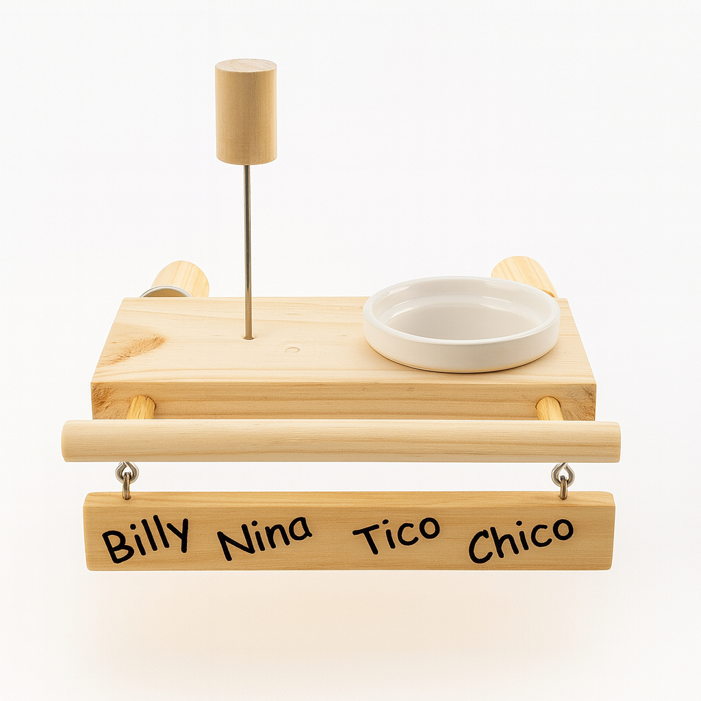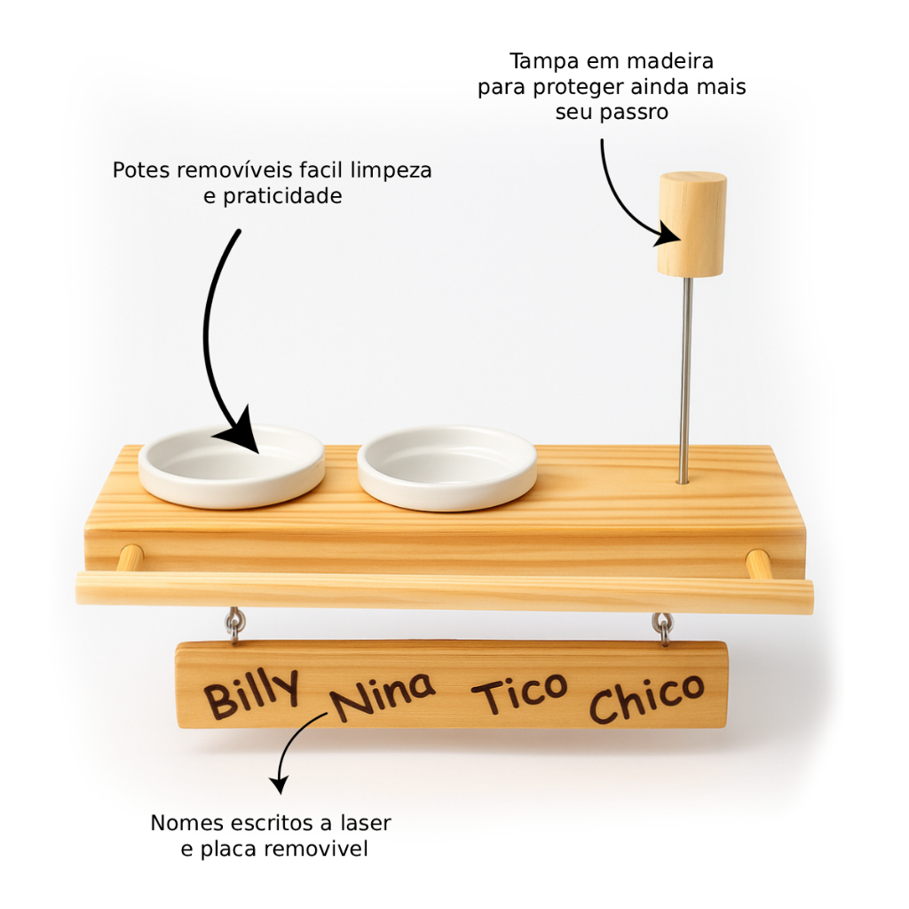 Comedouro bebedouro personalizado a laser com nome das suas aves