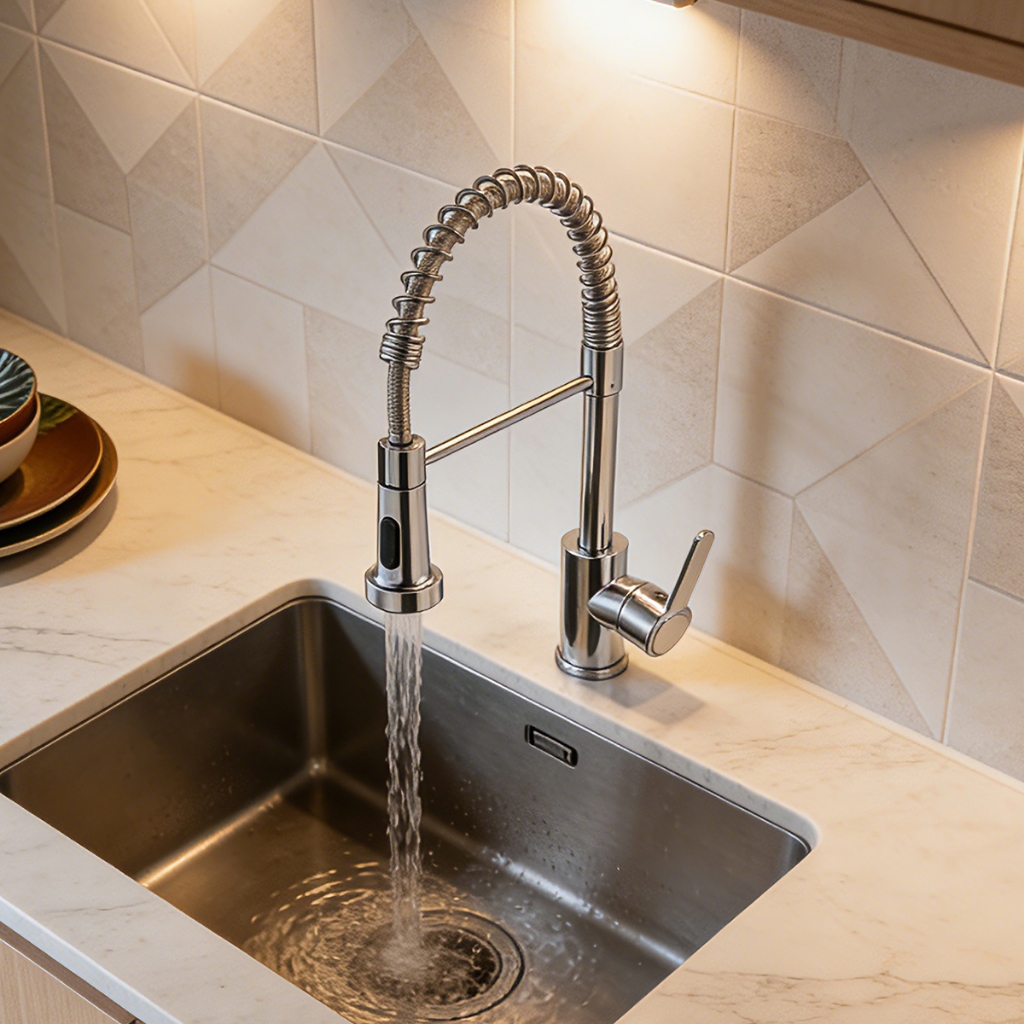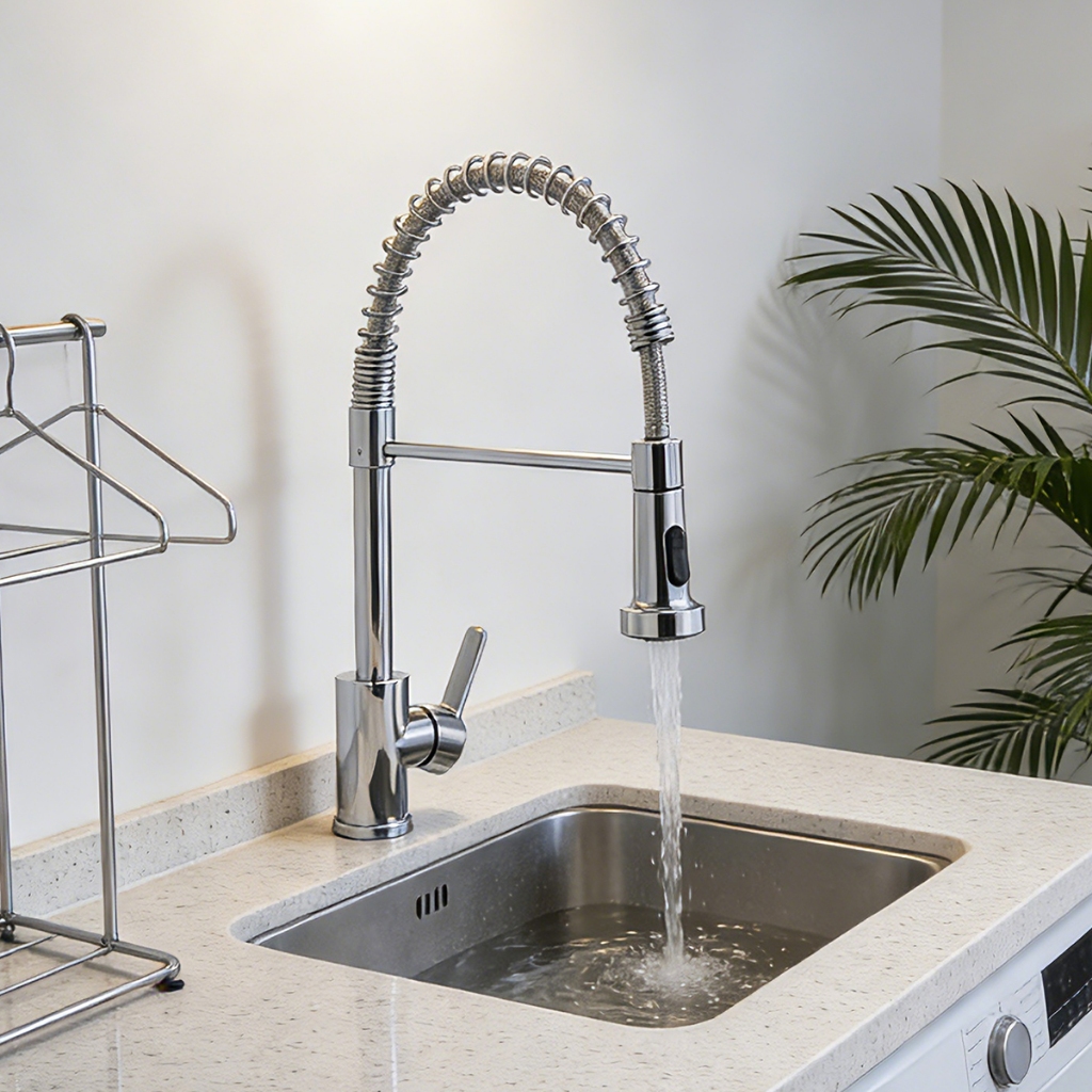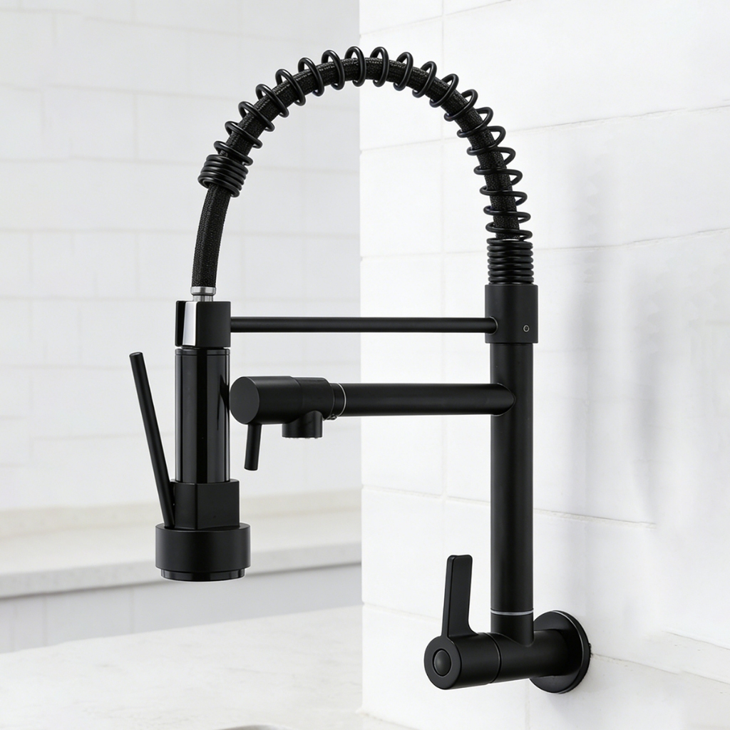Torneira De Cozinha Gourmet Com Alavanca Única E Extensão De Spray Flexível-Preta Prateada Para Preparação De Alimentos