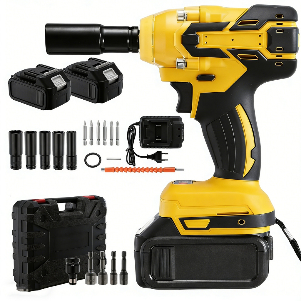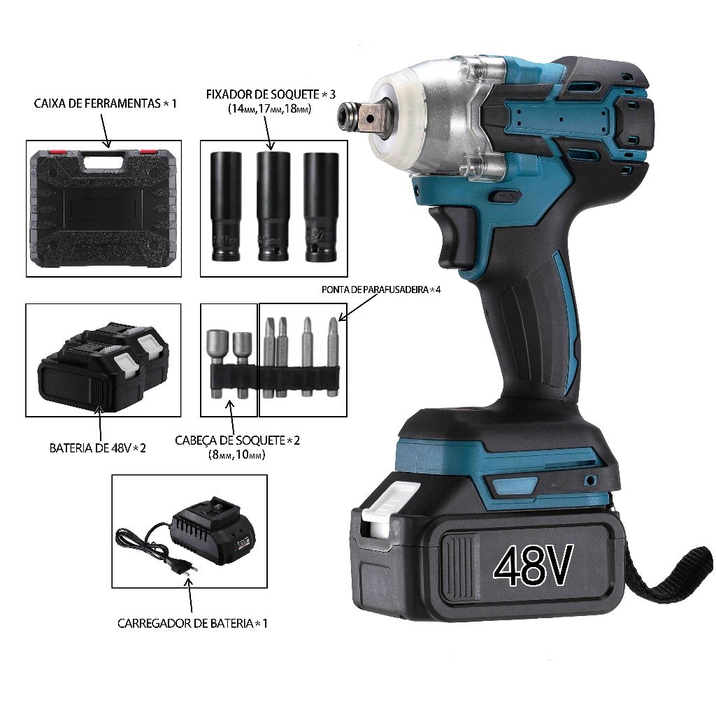 Conjunto De Chave De Impacto Sem Fio De Grau Profissional 48V , Escova , Portátil De 1/2 Polegada , Fenda E Furadeira In