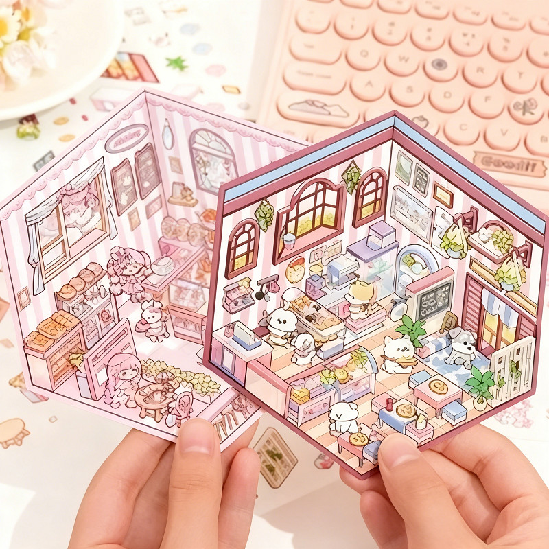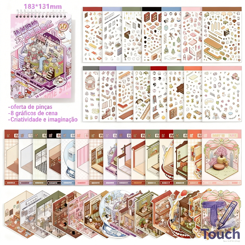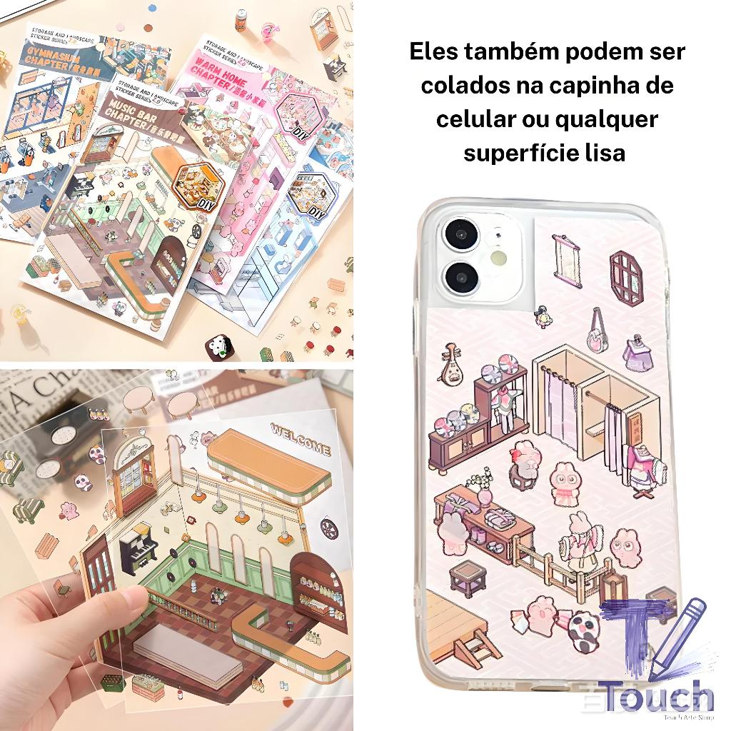 Adesivos 3d Miniatura 8 Cenário De Paisagismo Kawaii Fofo DIY Scrapbooking + Pinça