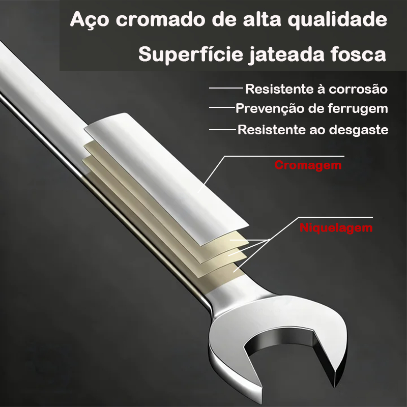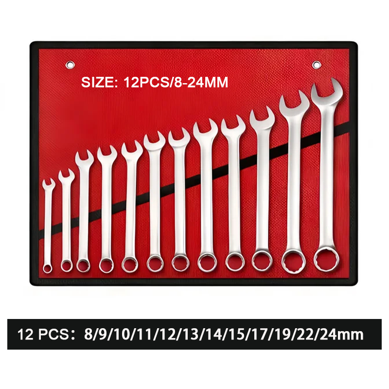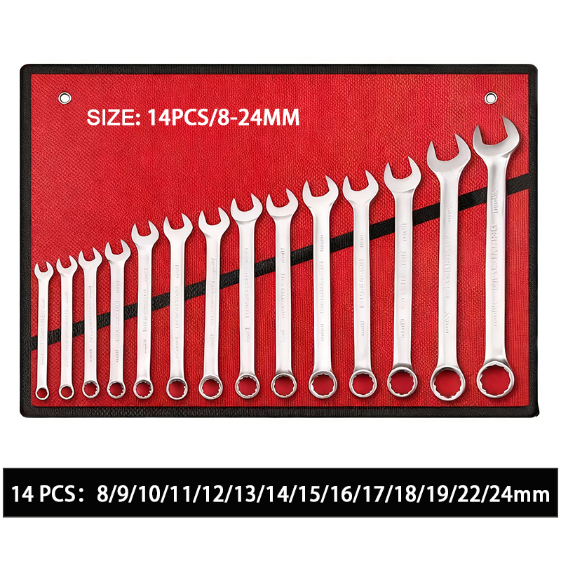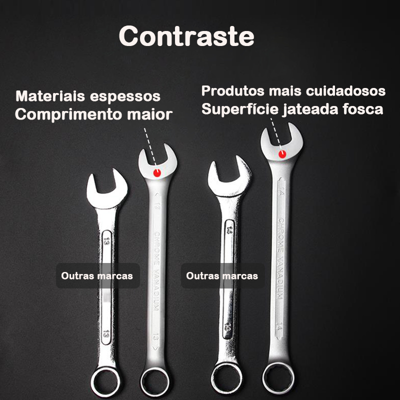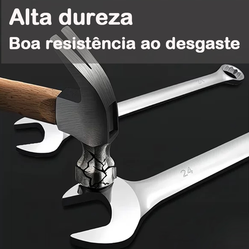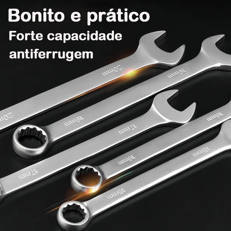 Jogo Chave Combinada Aço Cromo Vanádio Com 8-10-12 e 14 Peças De 8mm a 24mm Durável e Profissional