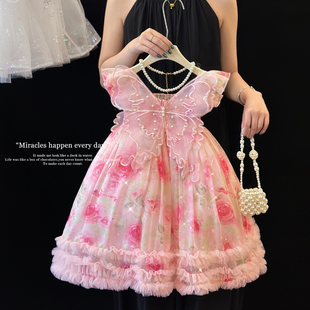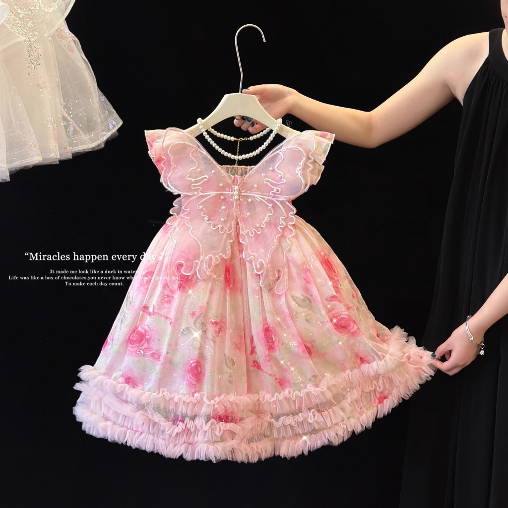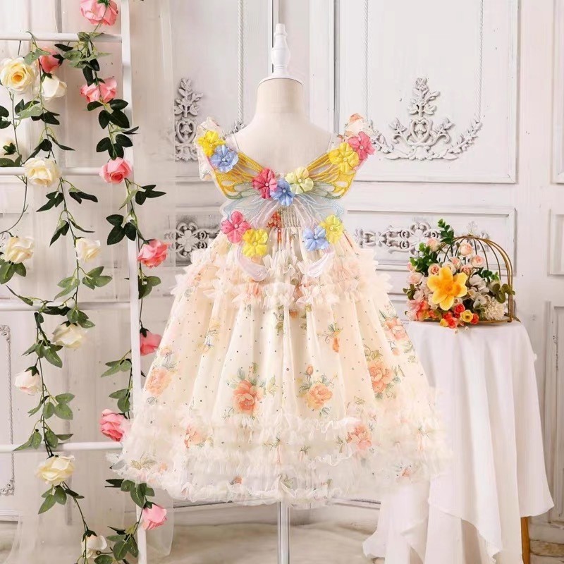 ENCHANTED PRINCESS Vestido floral de borboleta para meninas de 1 a 10 anos, vestido de princesa com asas de borboleta