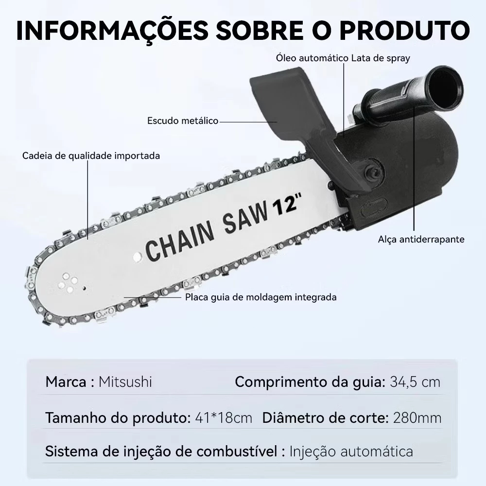 12 " Kit Completo Motosserra Adaptador Esmerilhadeira Lixadeira eletrosserra