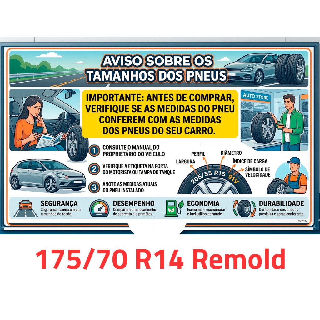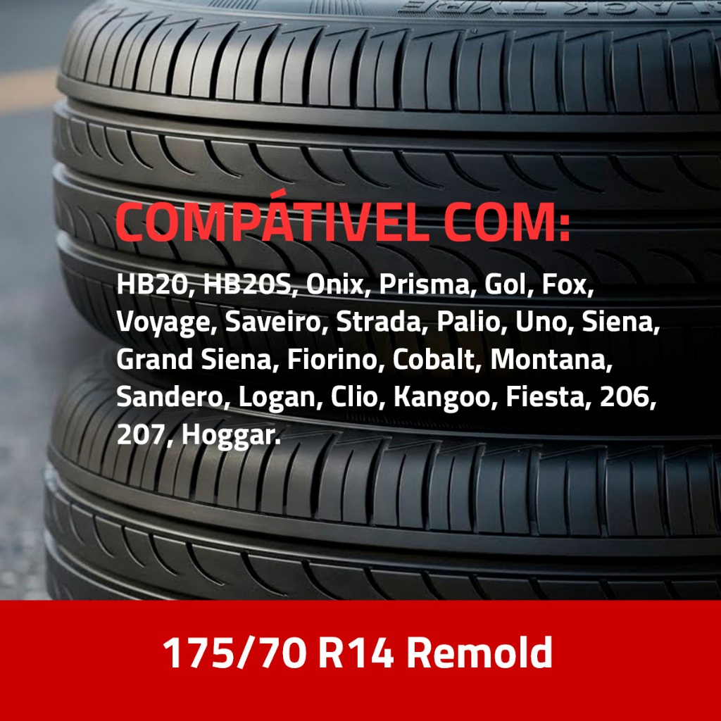 Pneu 175/70 R14 Remold Black Tyre Aro 14 Onix Prisma HB20 Gol Fox Fiesta Sandero Logan Palio Siena Clio 207 Inmetro