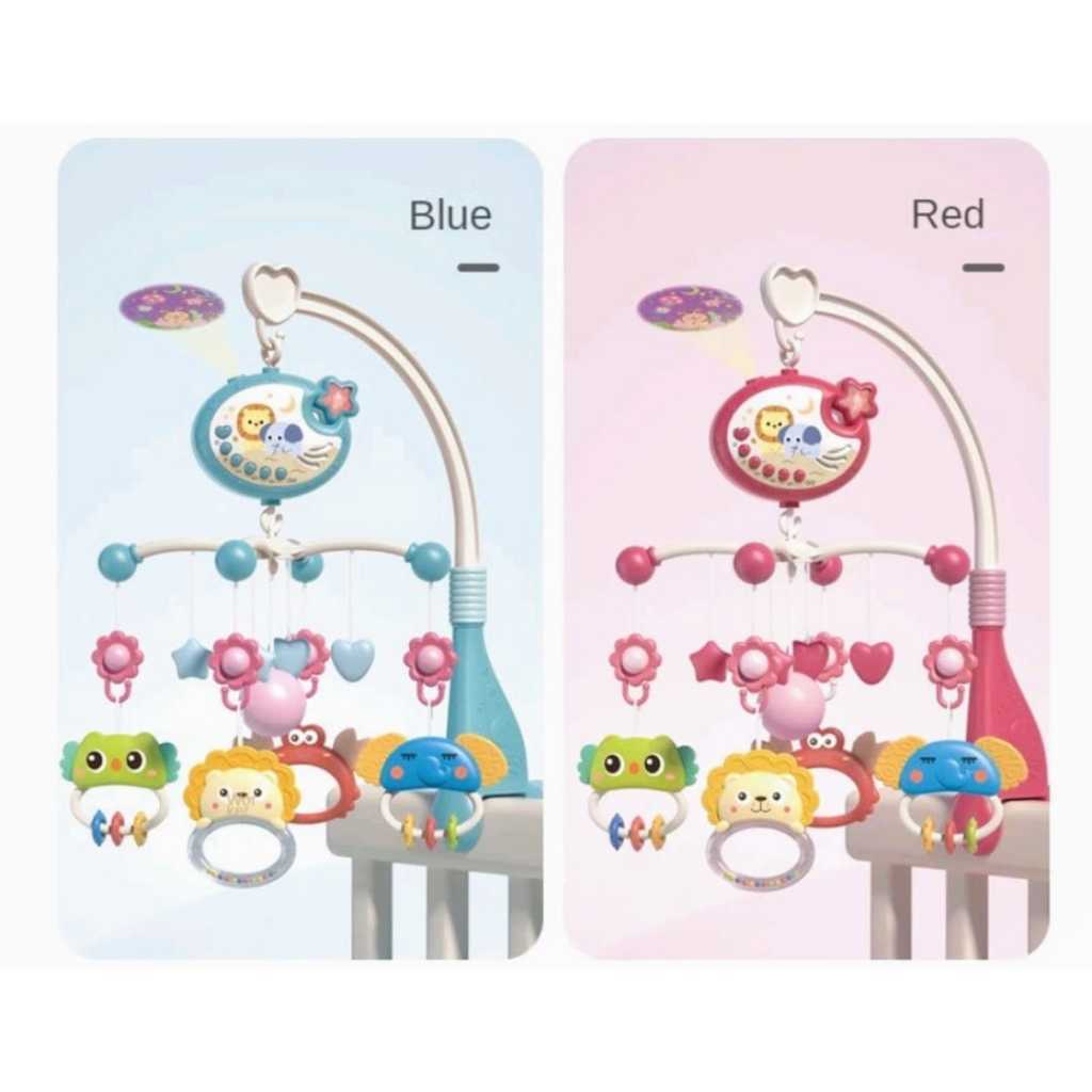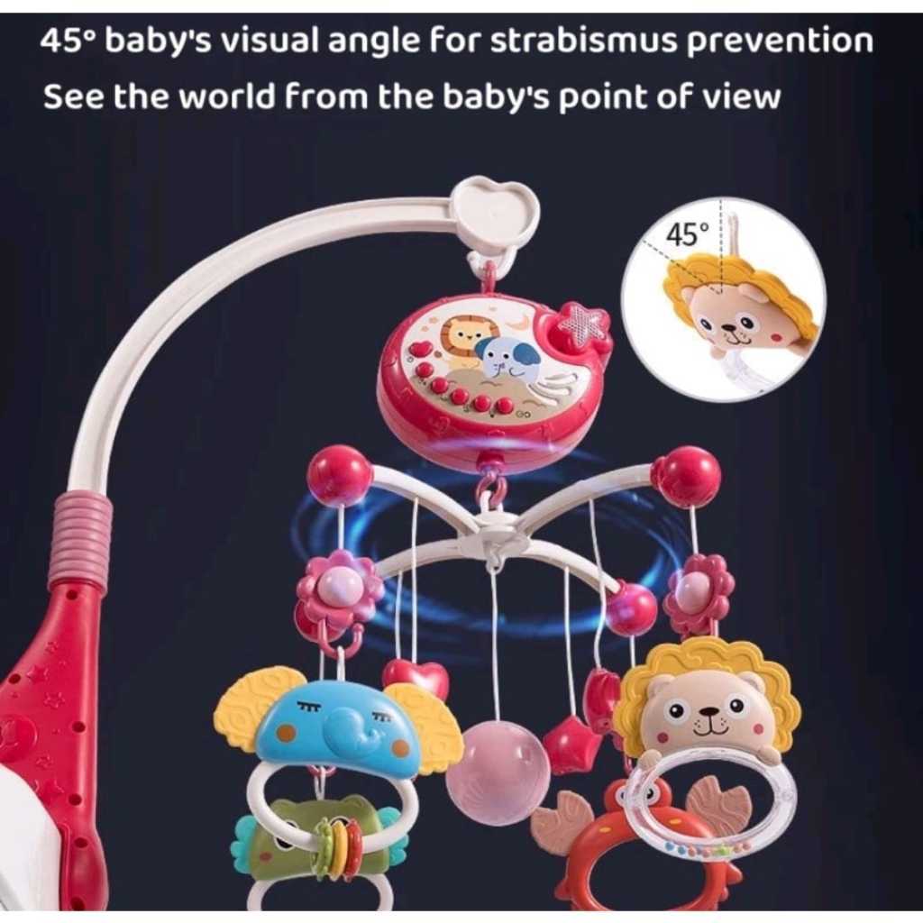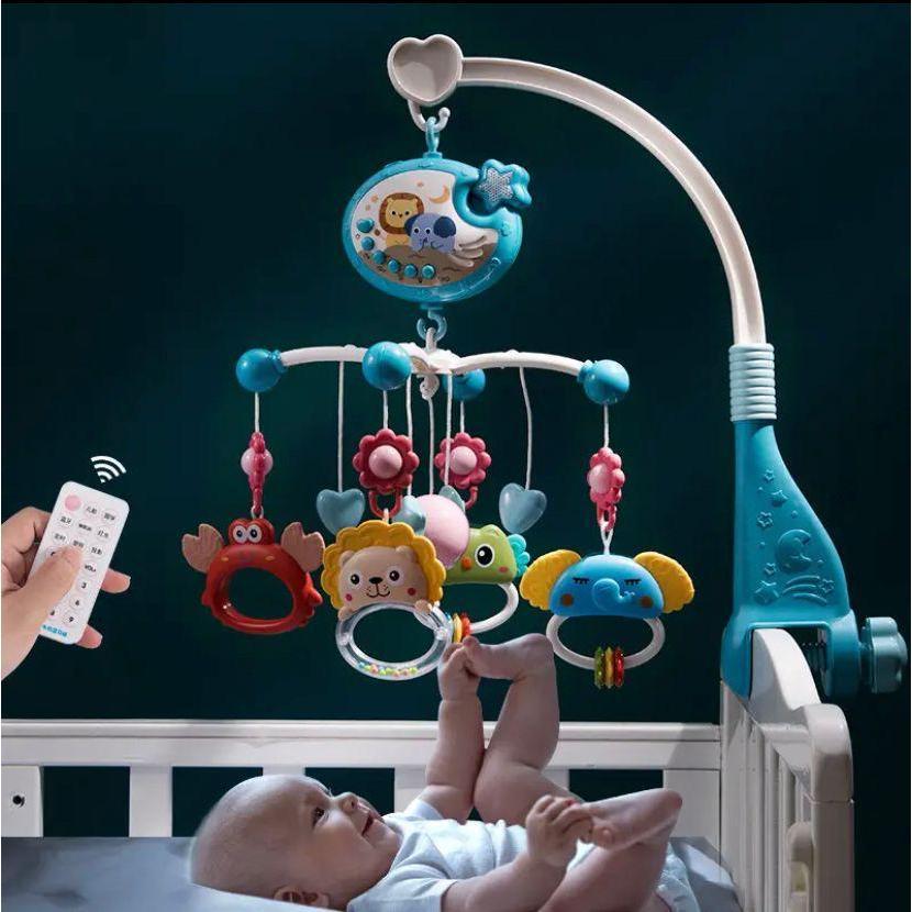 Brinquedo MultiFuncional Criança Recém Nascido Cabeceira Móbile Berço Chocalho Com Projeção De Luzes Som Controle Remoto