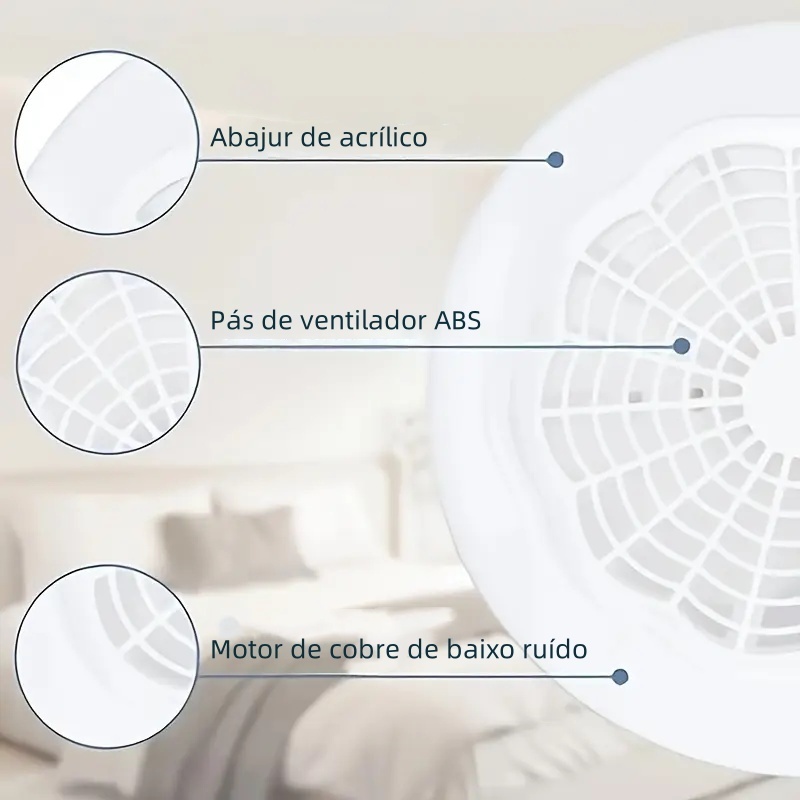 Ventilador Lâmpada De Teto Ajustável Luz 30W Led Baixo Ruído Controle Remoto Incluído