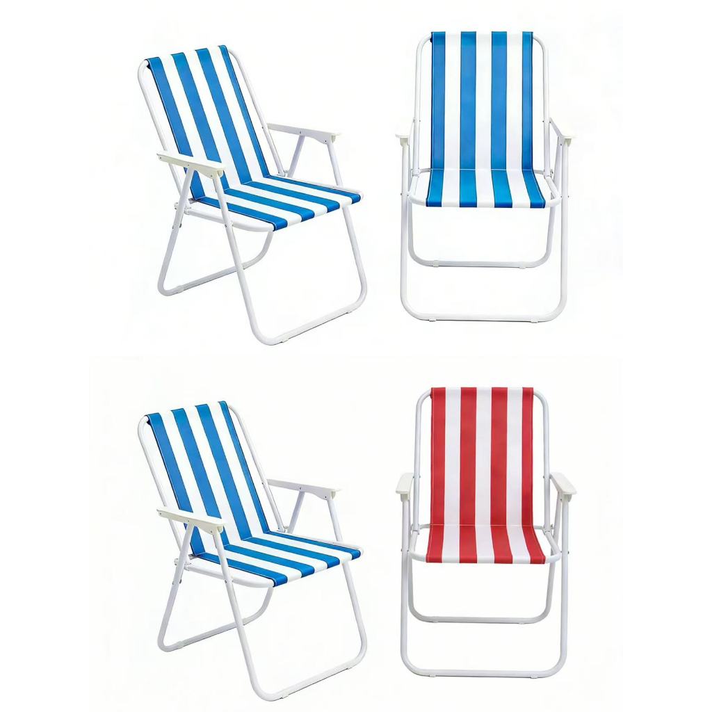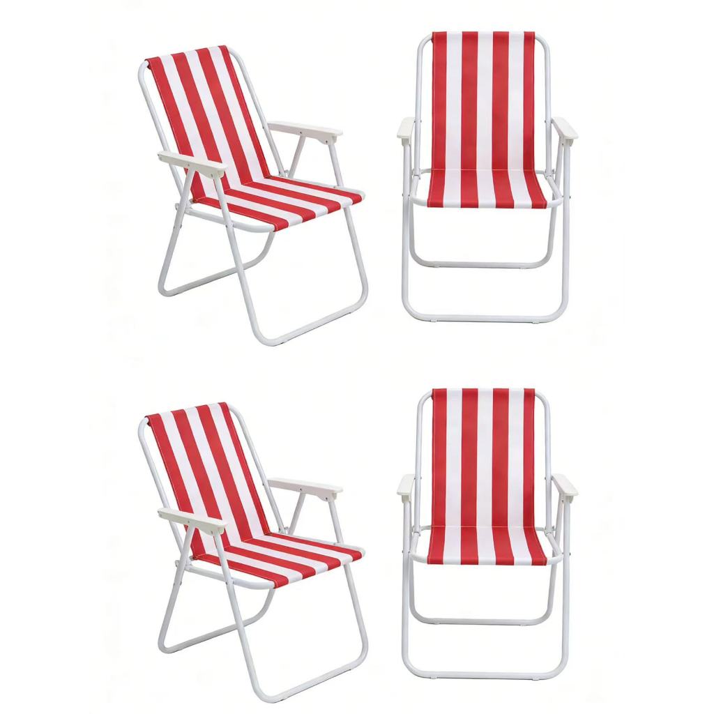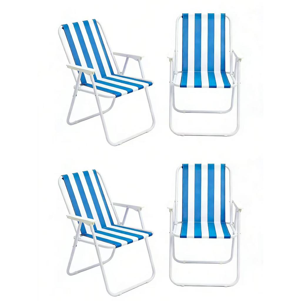 Kit 4 Cadeiras De Praia Alta Em Aço Dobrável Confortável 110kg