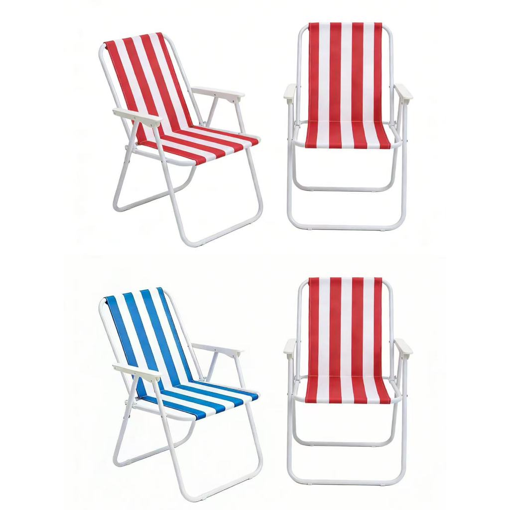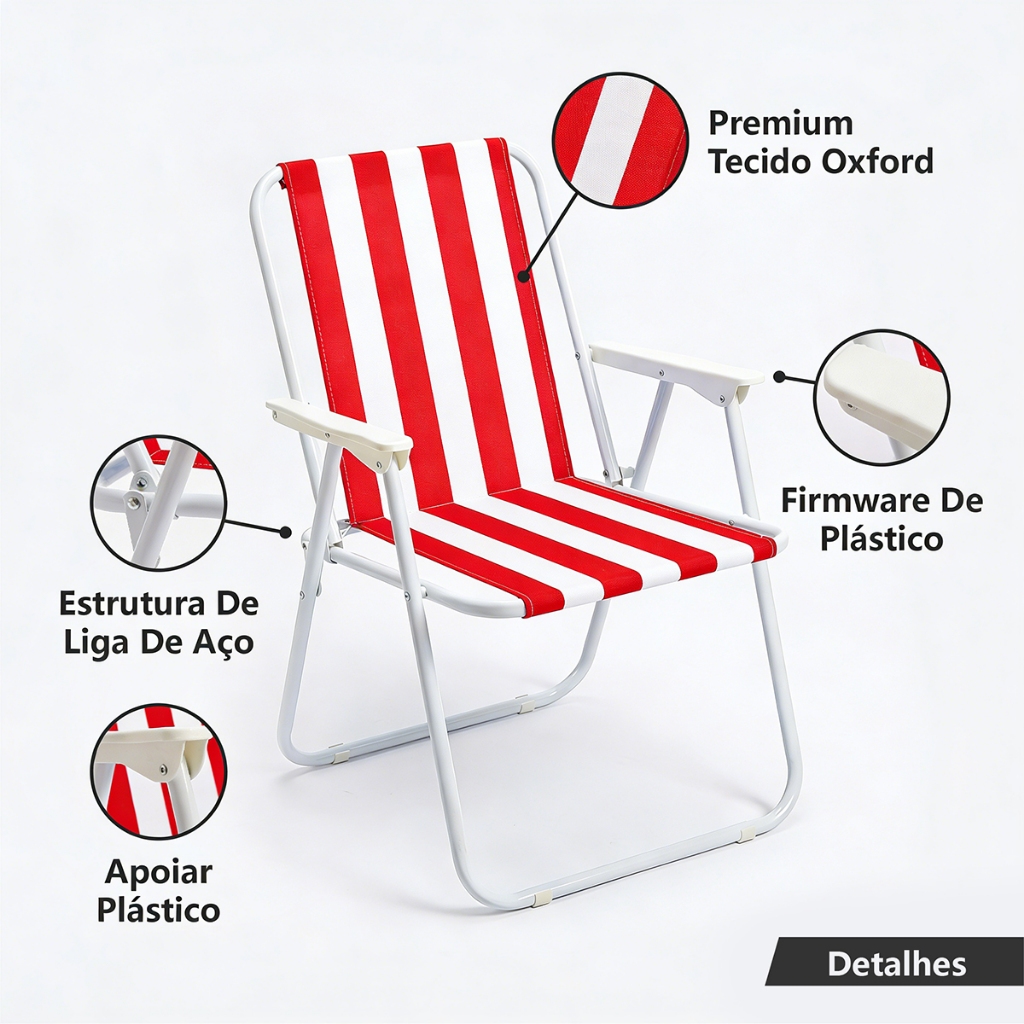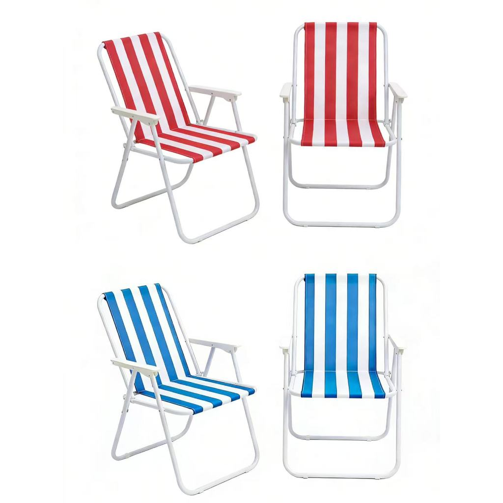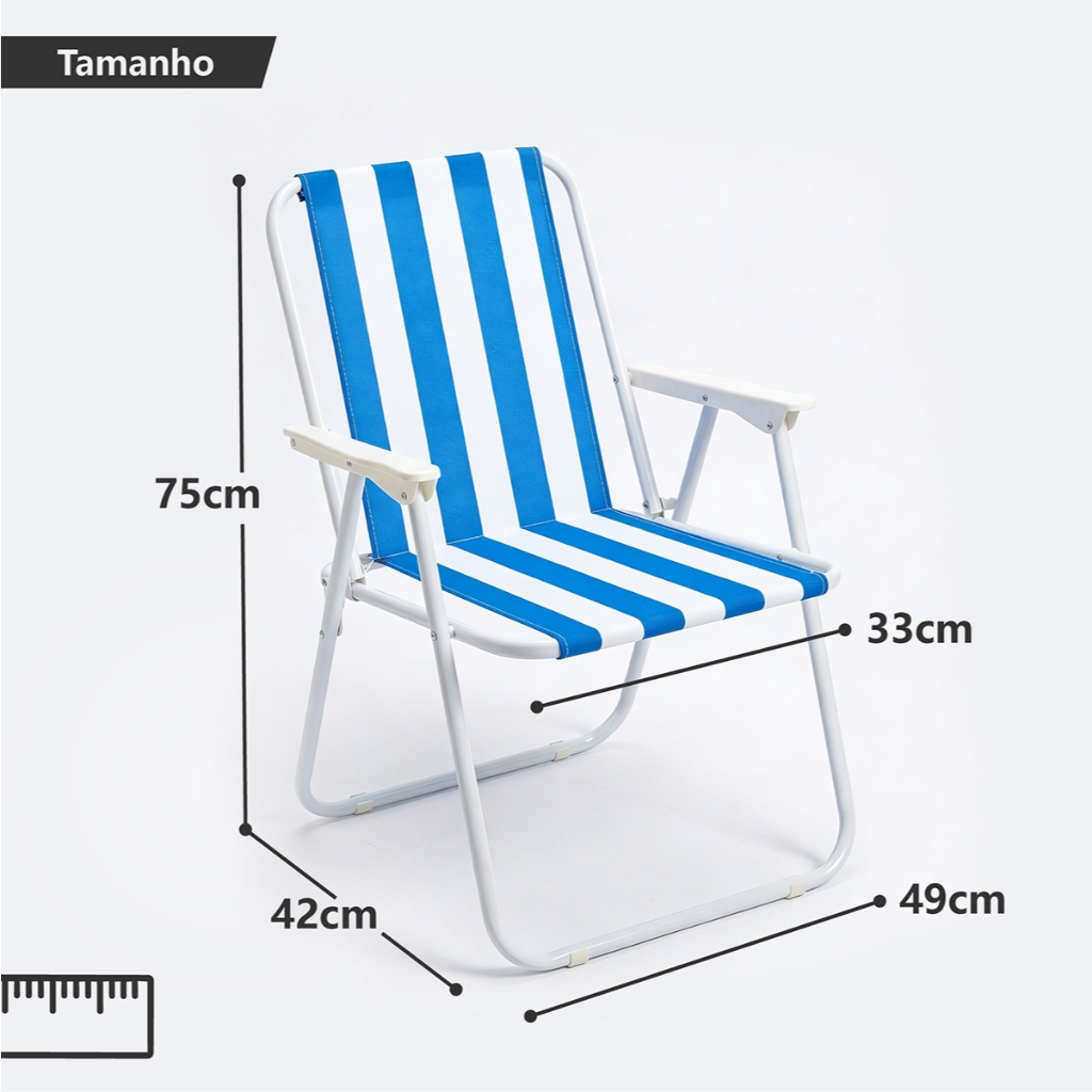 Kit 4 Cadeiras De Praia Alta Em Aço Dobrável Confortável 110kg