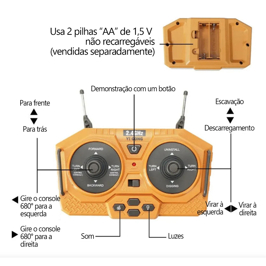 Brinquedo Carrinho de Controle Remoto: Escavadeira, Trator e Aventura para a Hora do Ninho! Diversão Garantida.kids
