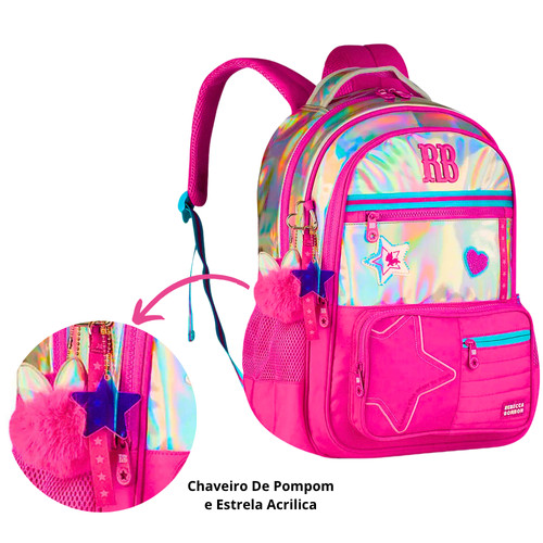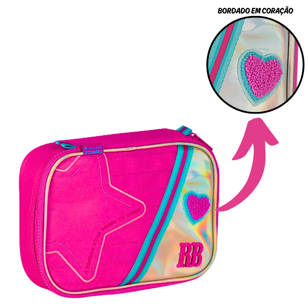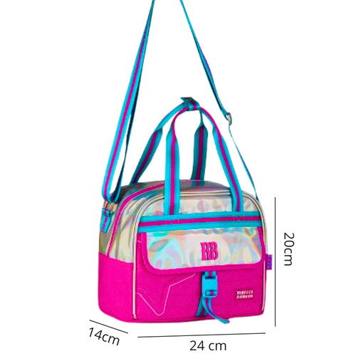 Kit Mochila de Costas ,Lancheira e Estojo Rebecca Bonbon Holo Shine Cor:Rosa