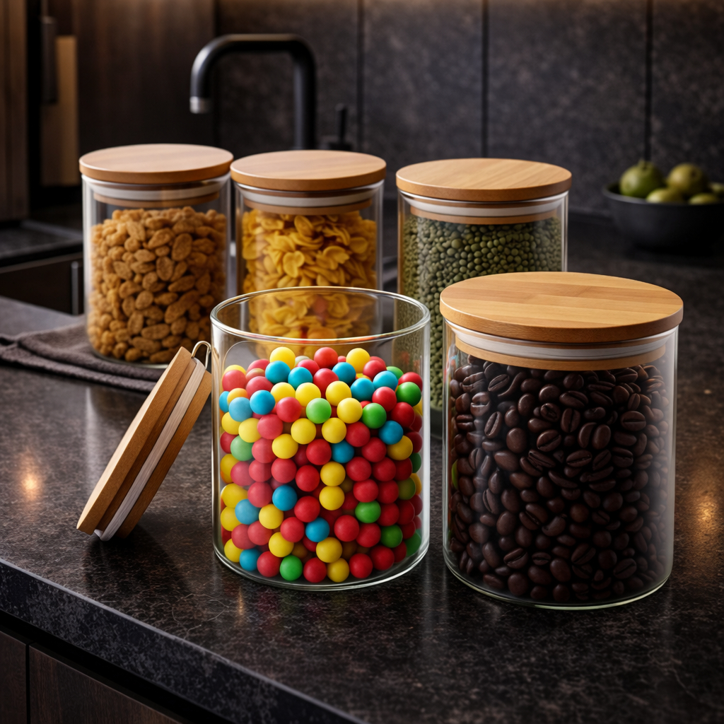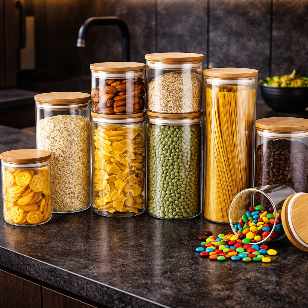 Kit 13 ou 9 potes herméticos de vidro com tampa de bambu para cozinha mantimentos alimentos