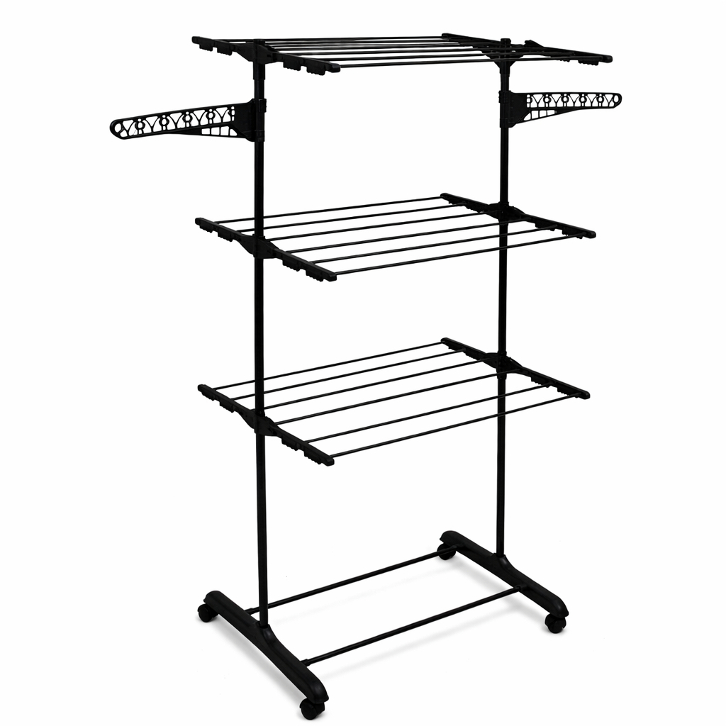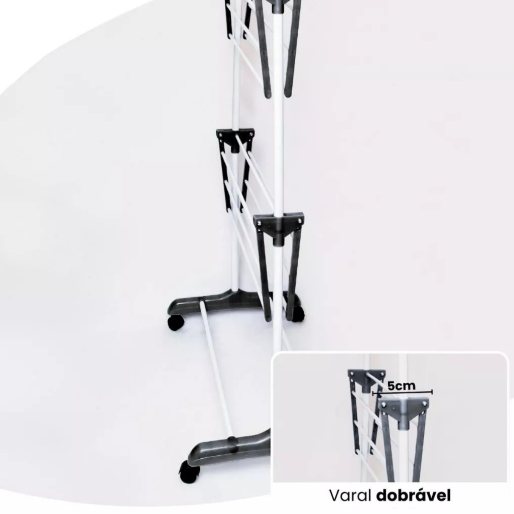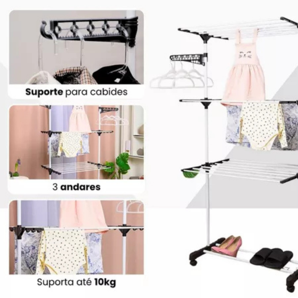 Varal De Chão 3 Andares Para Roupas e Calcinhas 4 Rodas Dobrável Reforçado e Portátil