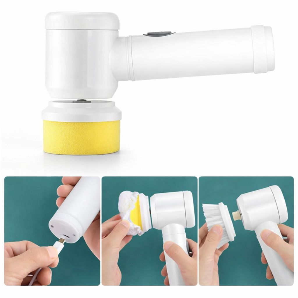 Escova de Limpeza Elétrica Portátil 5 em 1 | Esfregão Elétrico para Azulejos, Pias e Estofados
