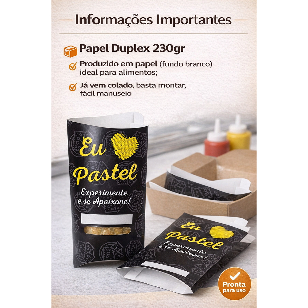 50 Embalagem Caixa Pastel Delivery M Viagem Amo Pastel Reforçada
